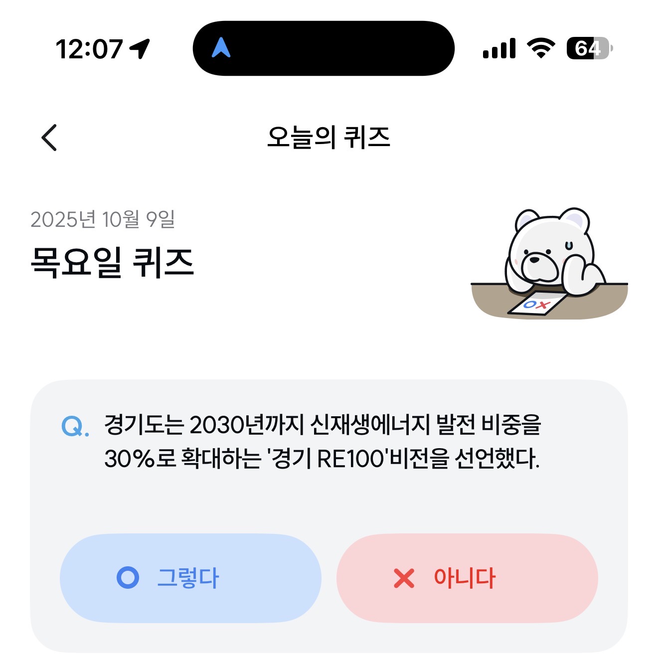 기후행동 기회소득 오늘의 퀴즈 정답은 그렇다 입니다