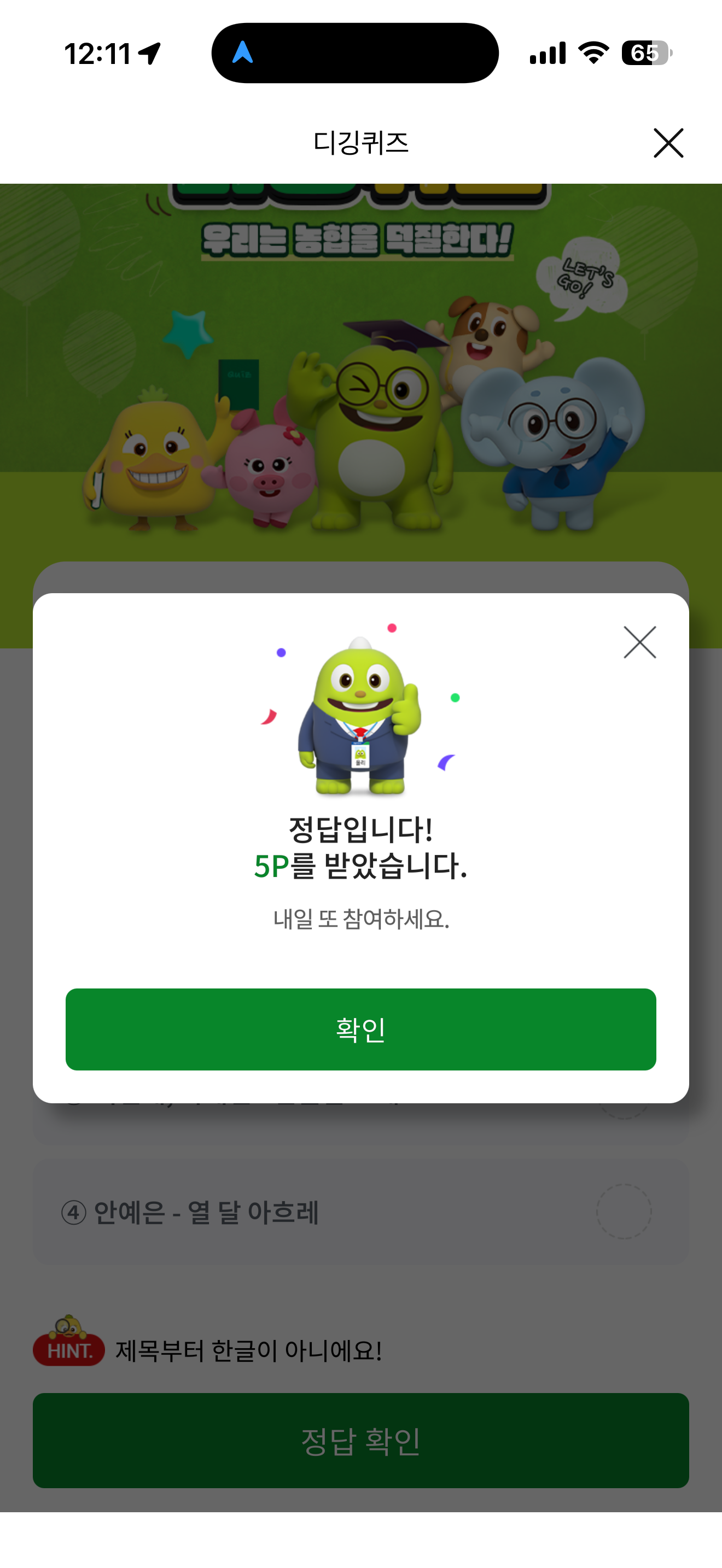 NH올원뱅크 디깅퀴즈 10월 9일 문제입니다