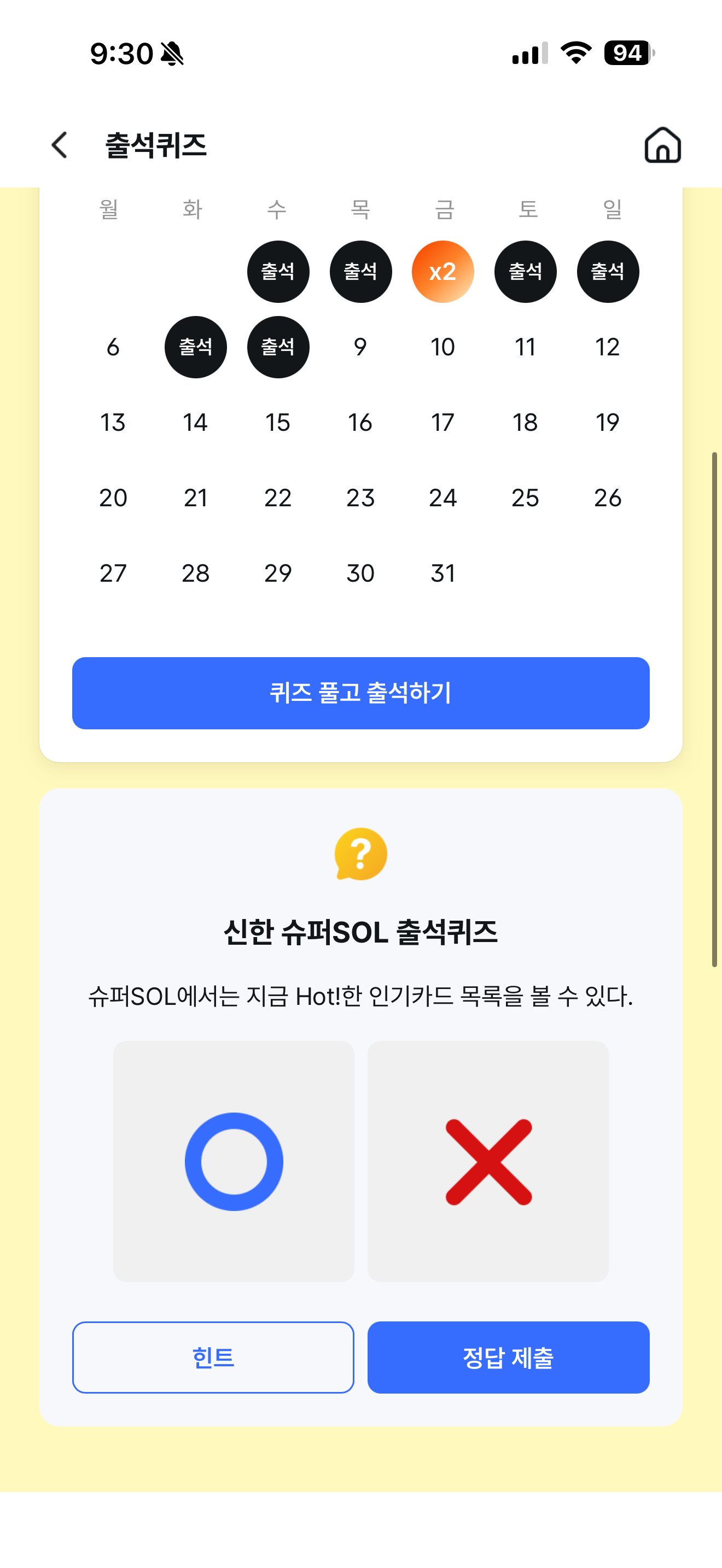 신한 슈퍼SOL 출석퀴즈 정답은 O 입니다