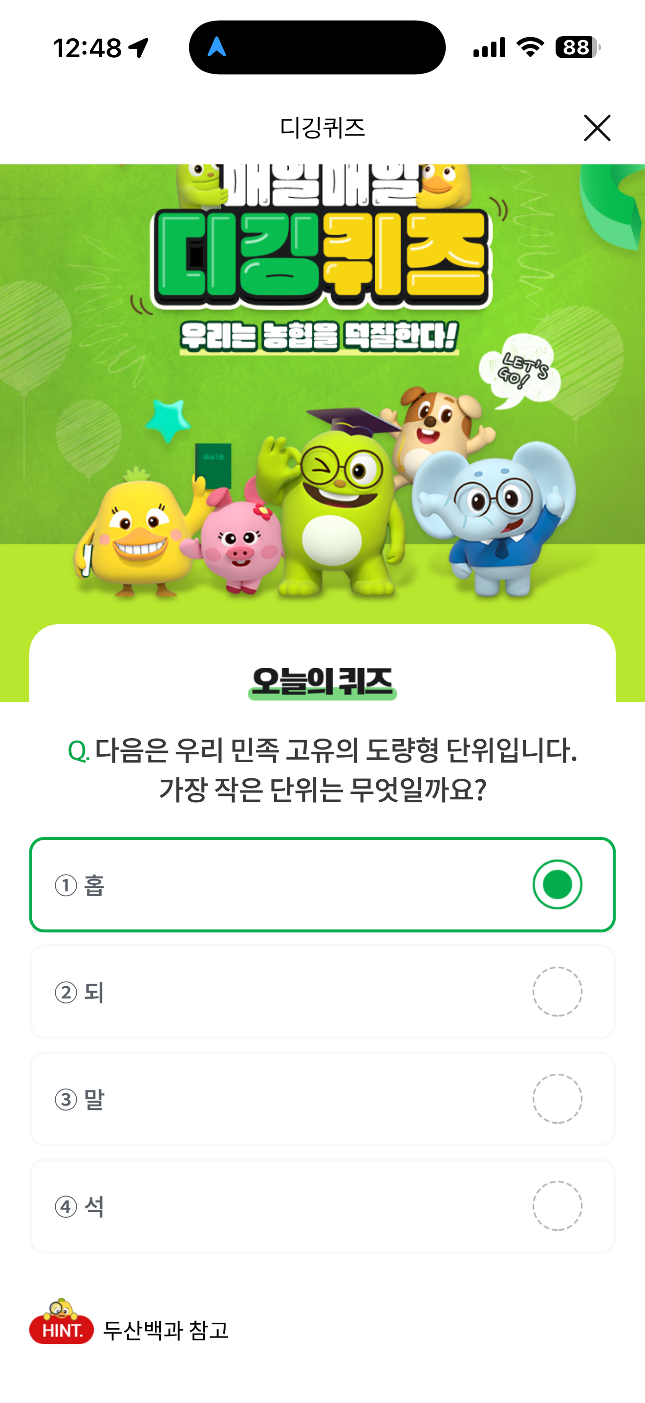 NH올원뱅크 디깅퀴즈 정답은 홉 입니다