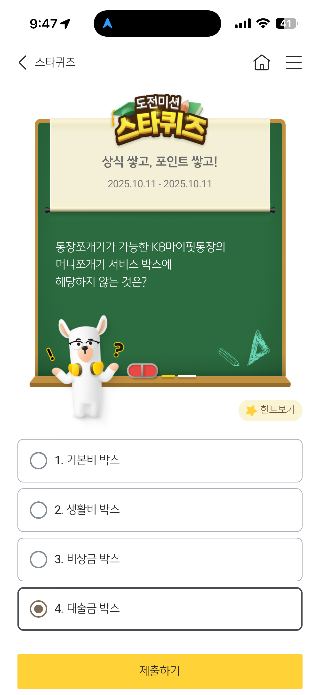 KB스타뱅킹 스타퀴즈 10월 11일 문제입니다