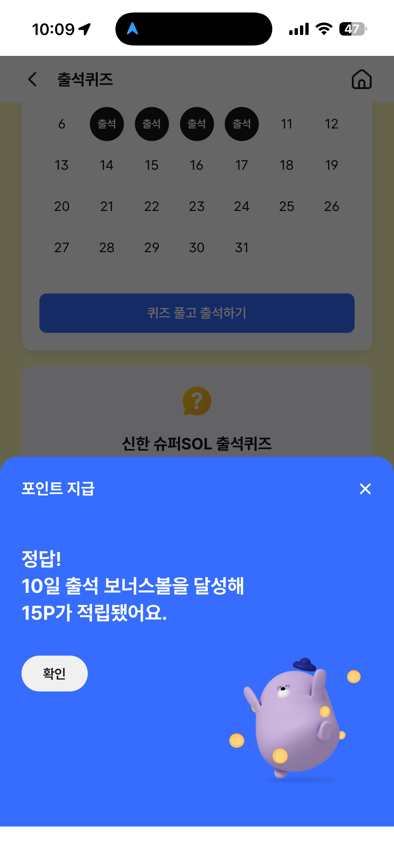 신한 슈퍼SOL 출석퀴즈 10월 11일 문제입니다