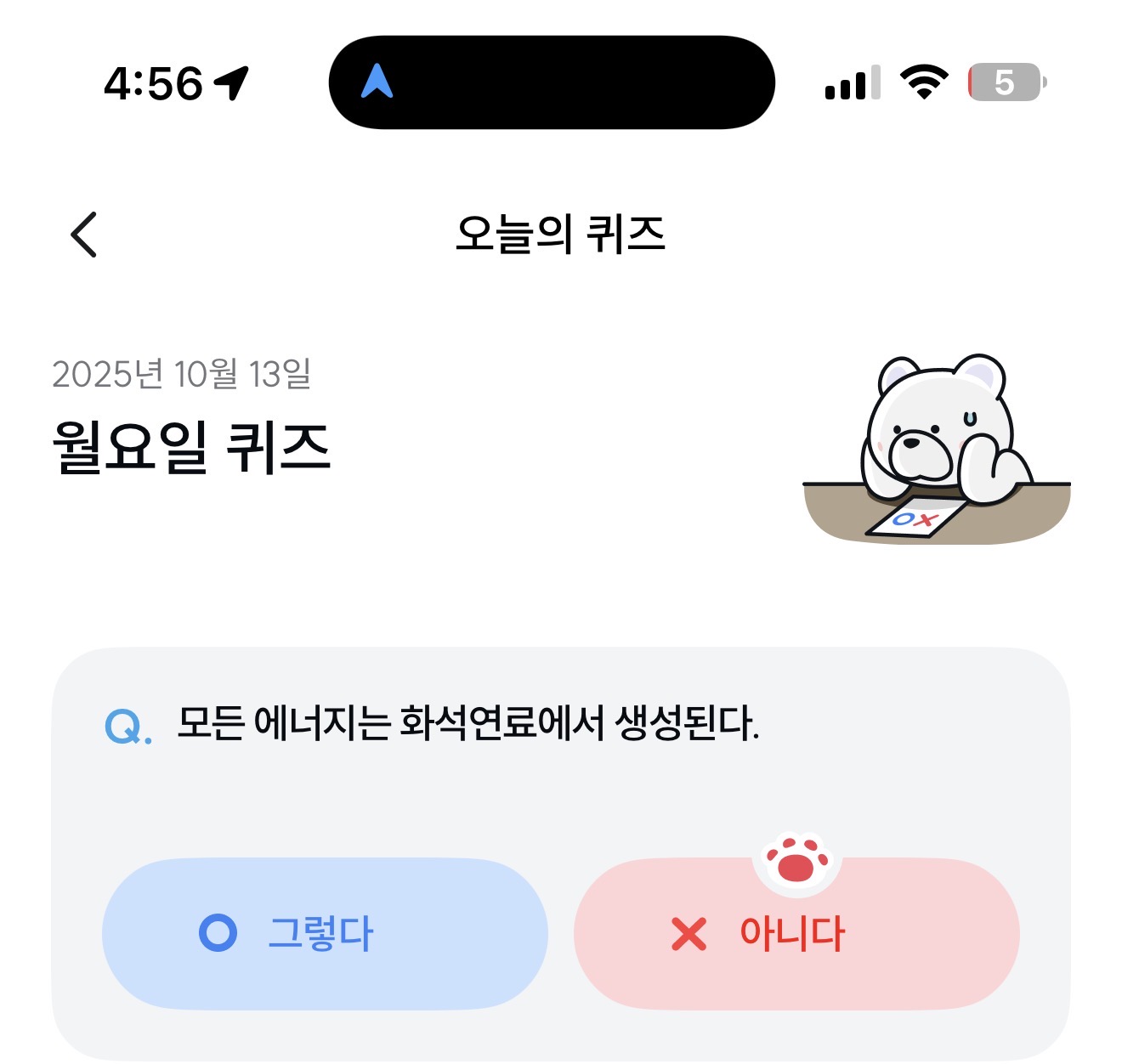 기후행동 기회소득 오늘의 퀴즈 정답은 아니다 입니다