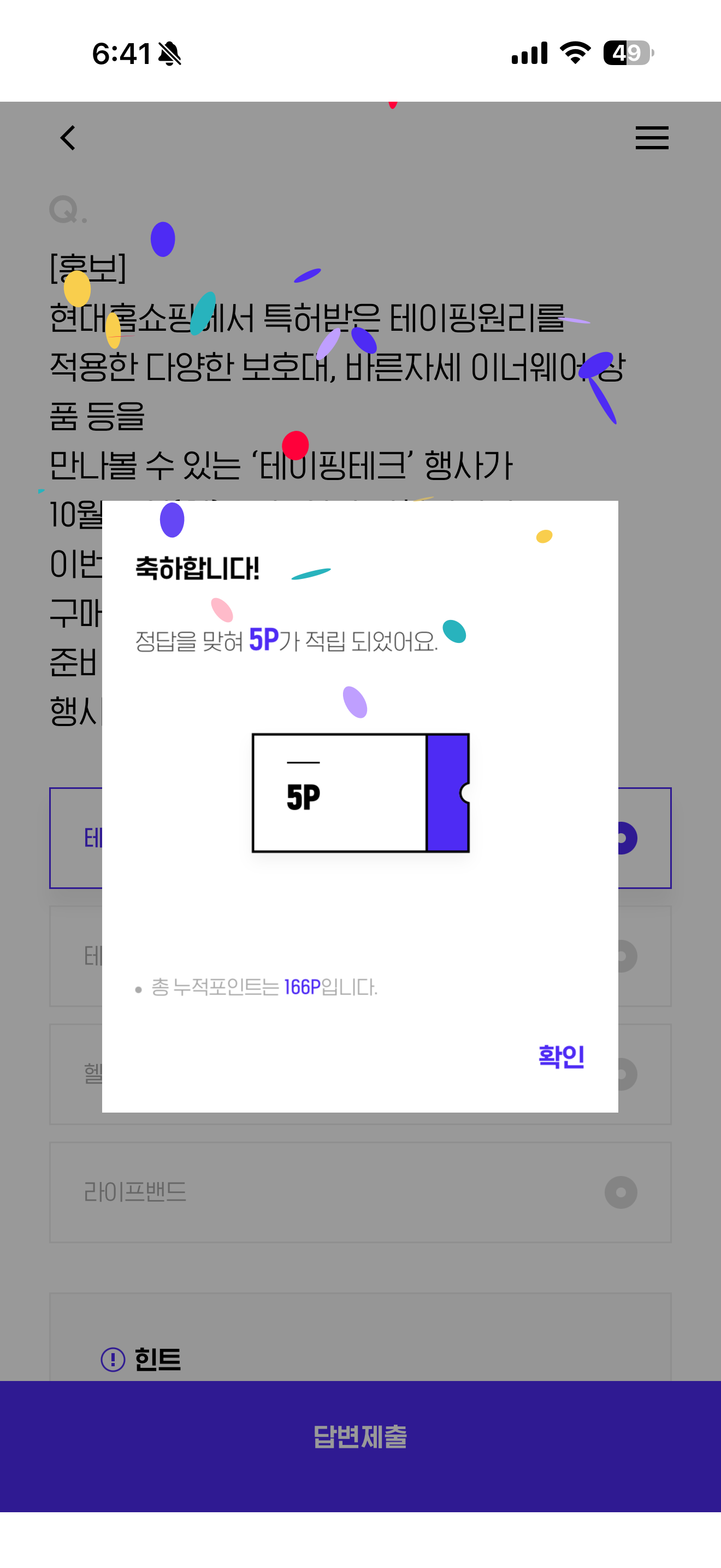 H포인트 퀴즈 10월 13일 문제입니다