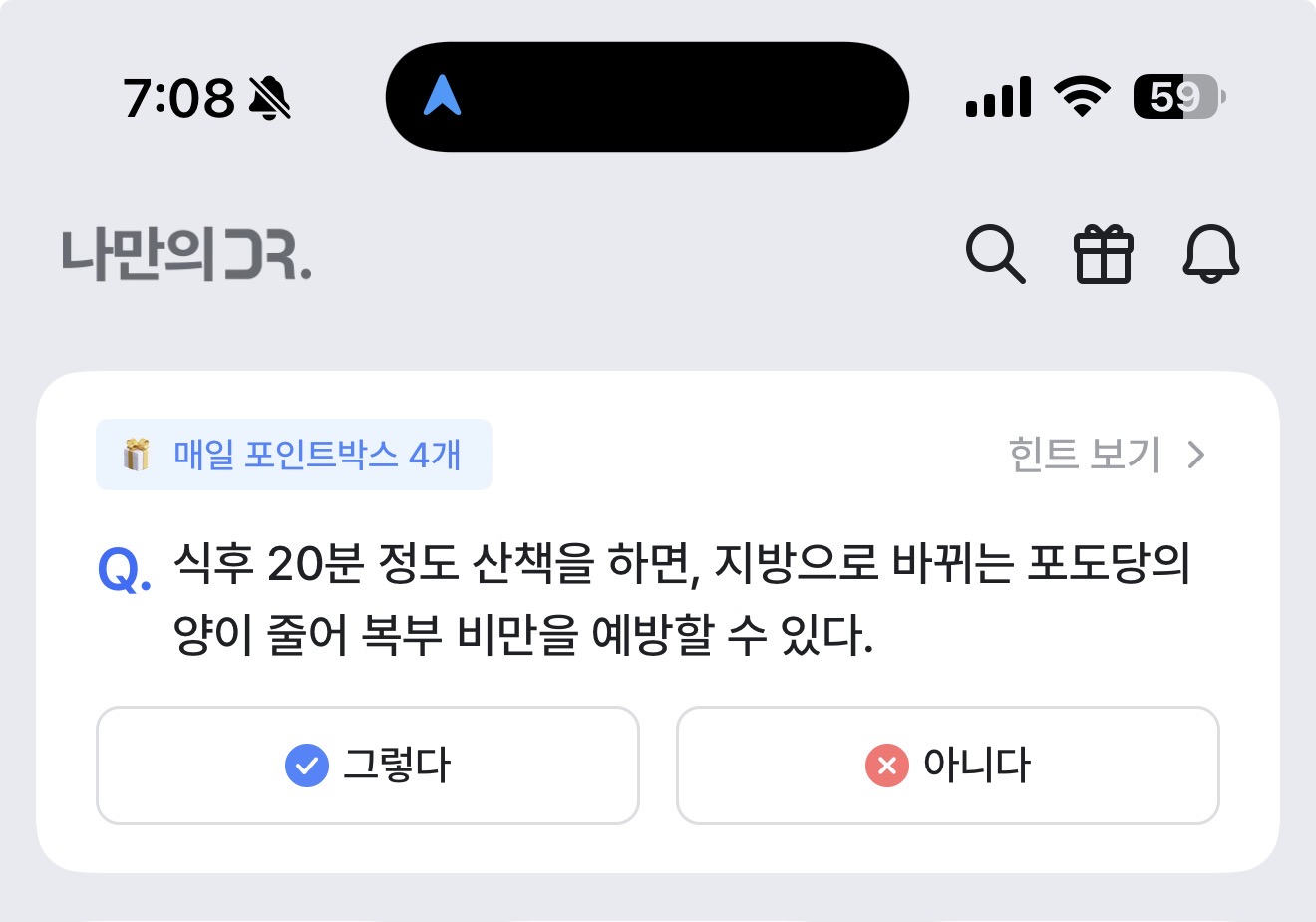 식후 20분 정도 산책을 하면, 지방으로 바뀌는 포도당의 양이 줄어 복부 비만을 예방할 수 있다. 그렇다 아니다 선택하면 되는데요. 식후 20분 정도 산책만으로 복부 비만을 예방할 수 있을까요? 잘 참고해 보세요