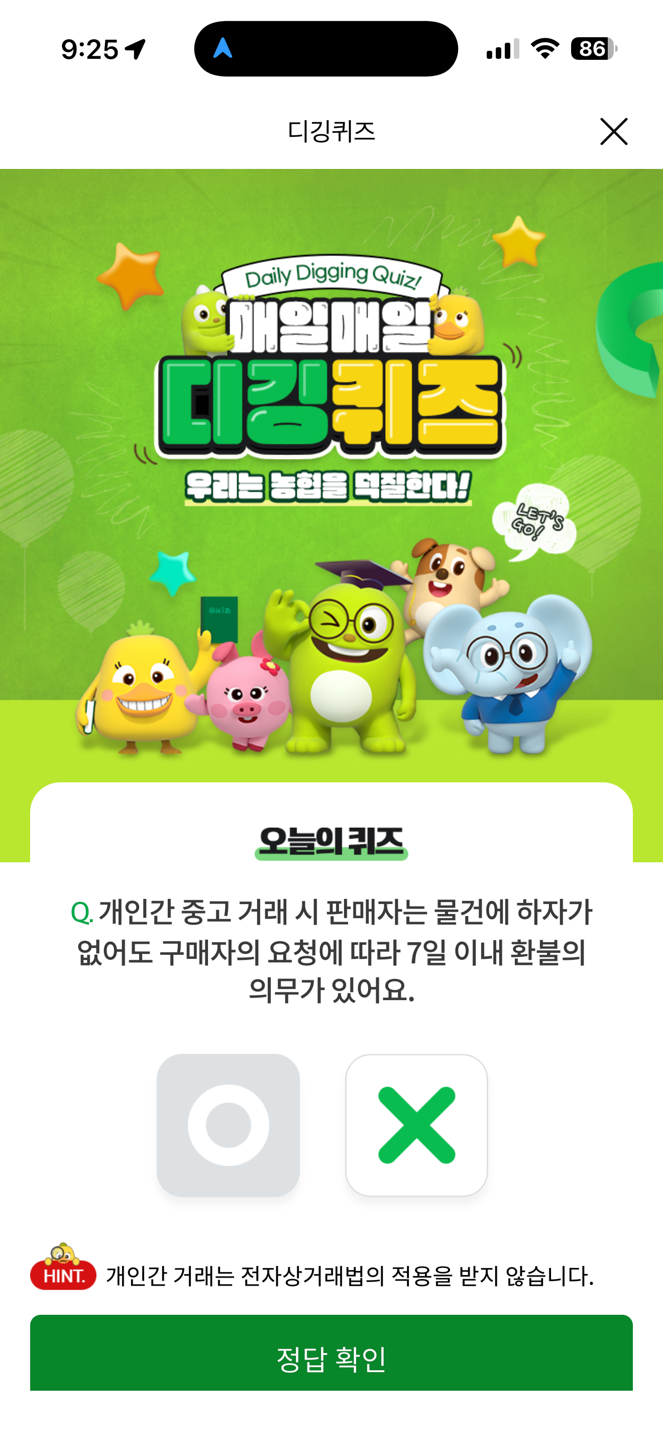 NH올원뱅크 디깅퀴즈 10월 14일 정답(개인간 중고 거래 시 판매자는 물건에 하자가 없어도 구매자의 요청에 따라 7일 이내 환불의 의무가 있어요)
