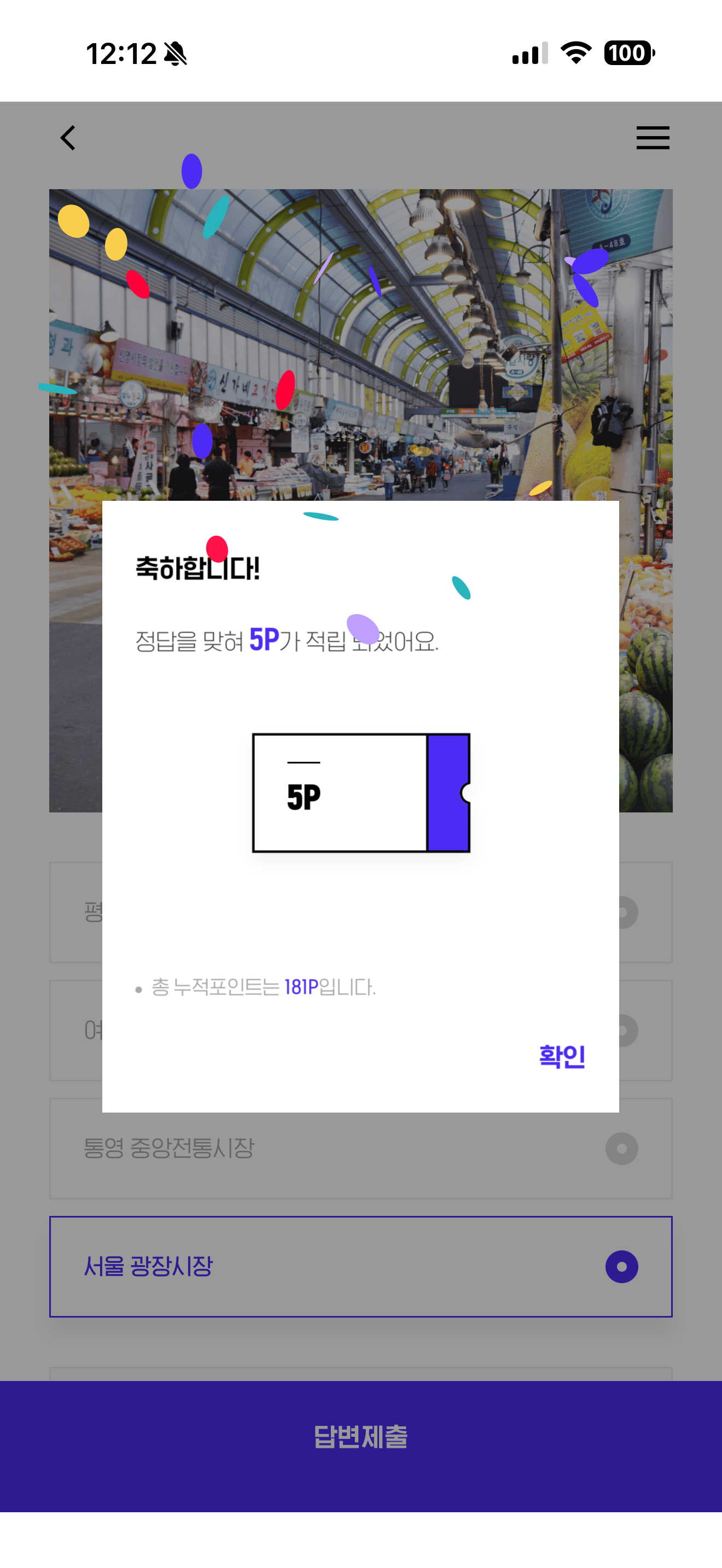 H포인트 퀴즈 정답은 서울 광장시장 입니다