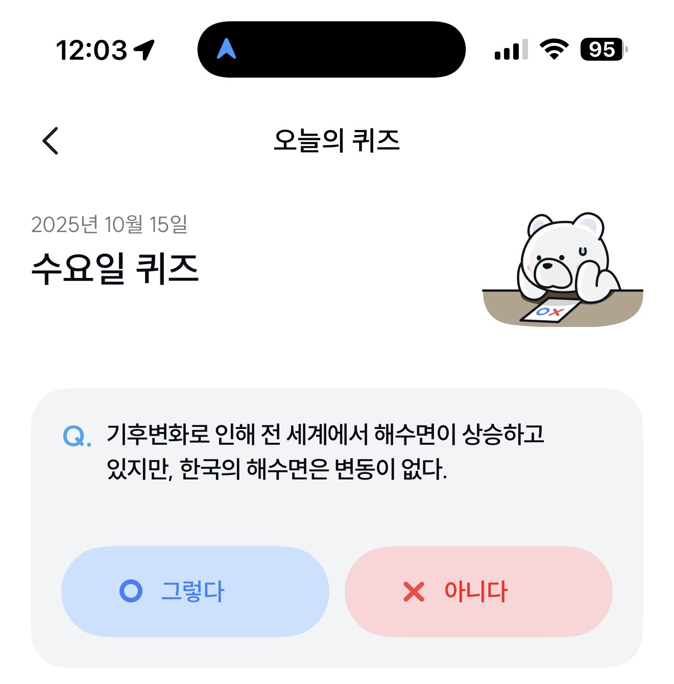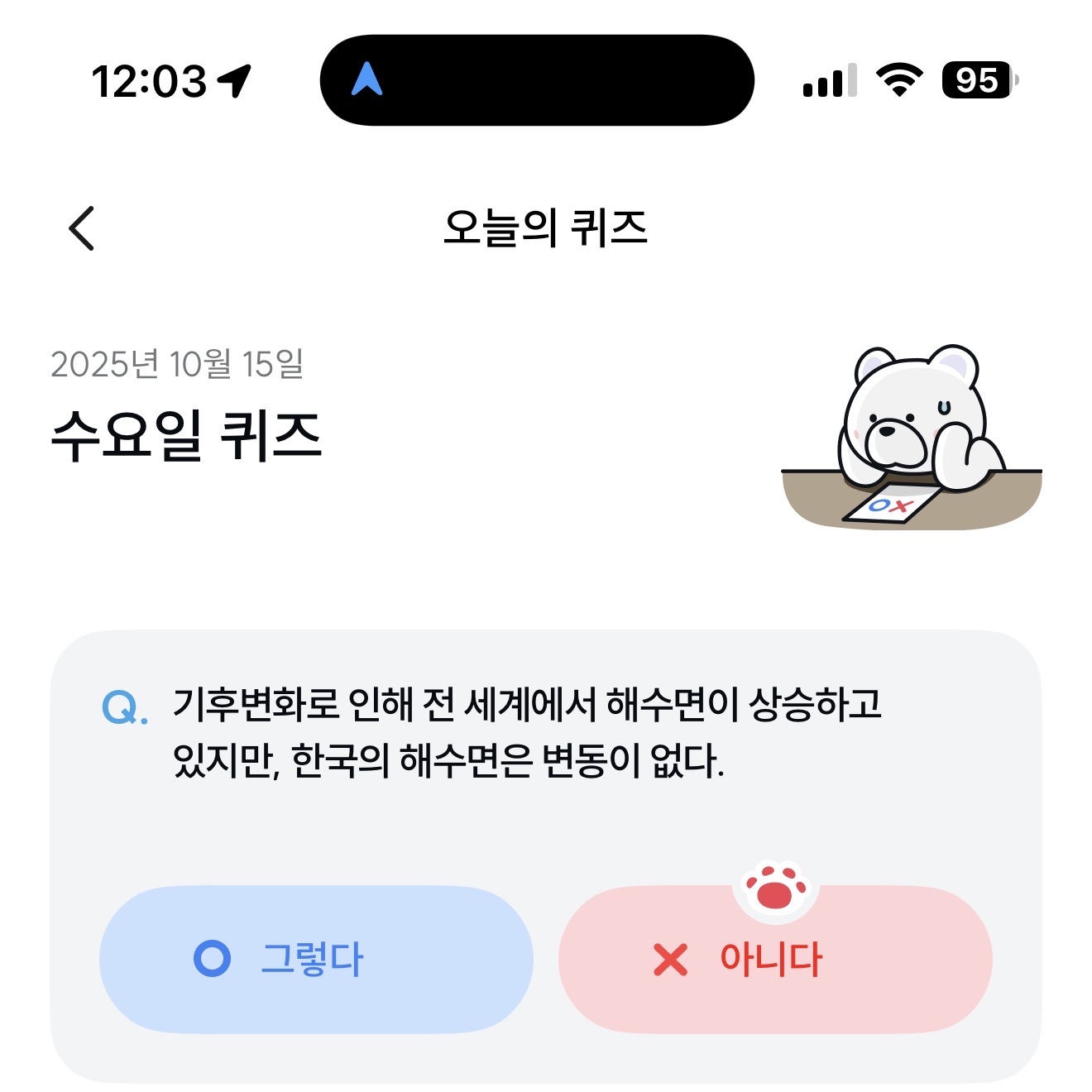 기후행동 기회소득 오늘의 퀴즈 정답은 아니다 입니다