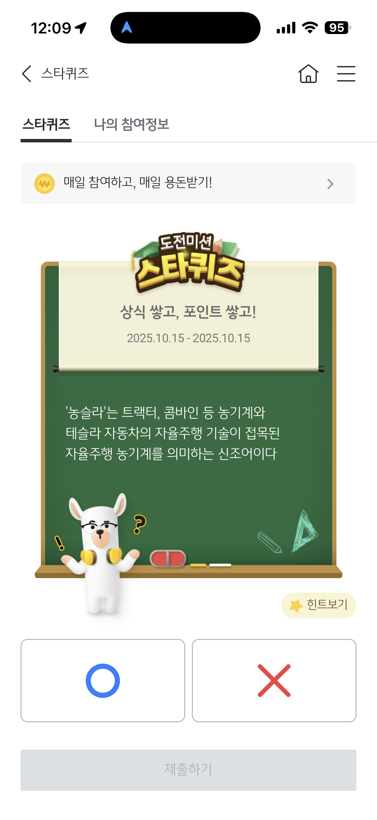 KB스타뱅킹 스타퀴즈 정답은 O 입니다