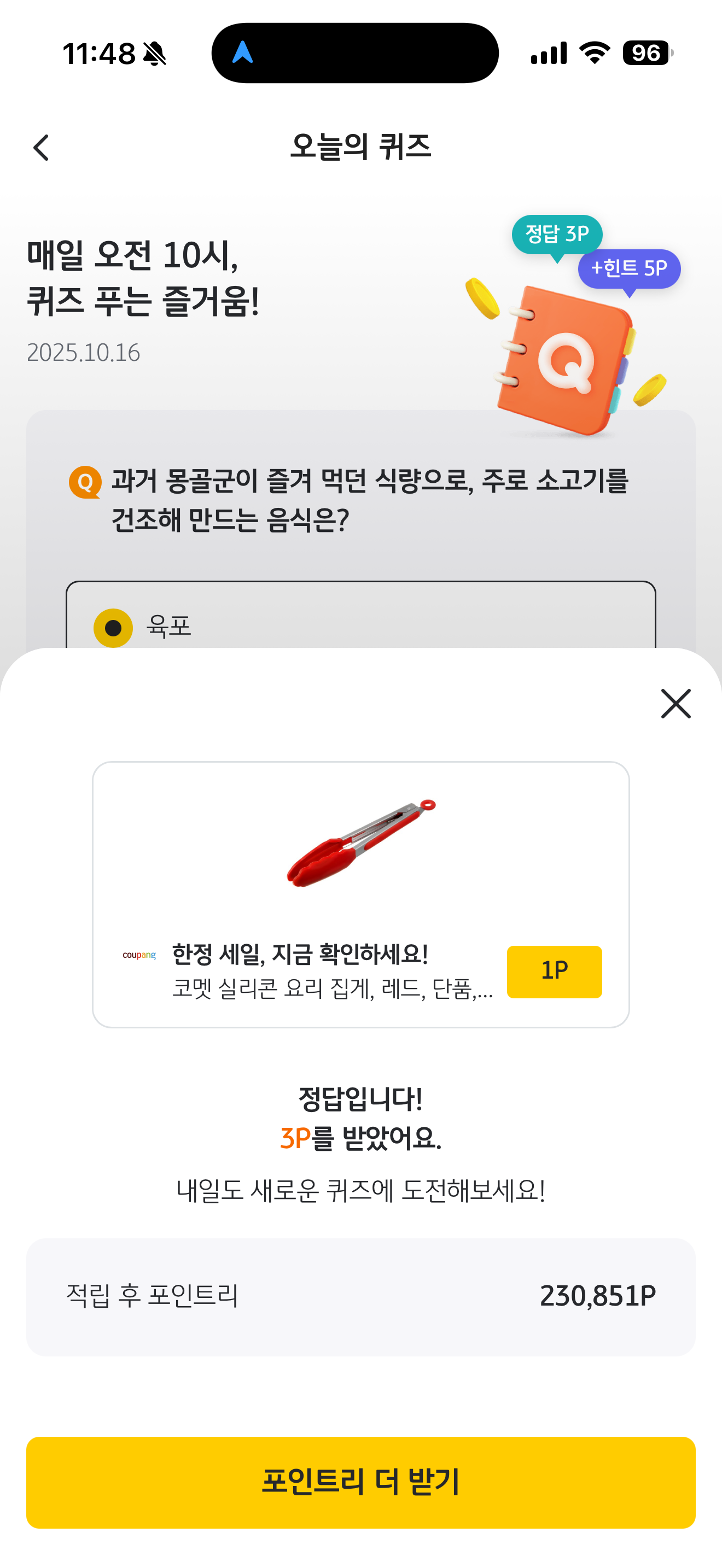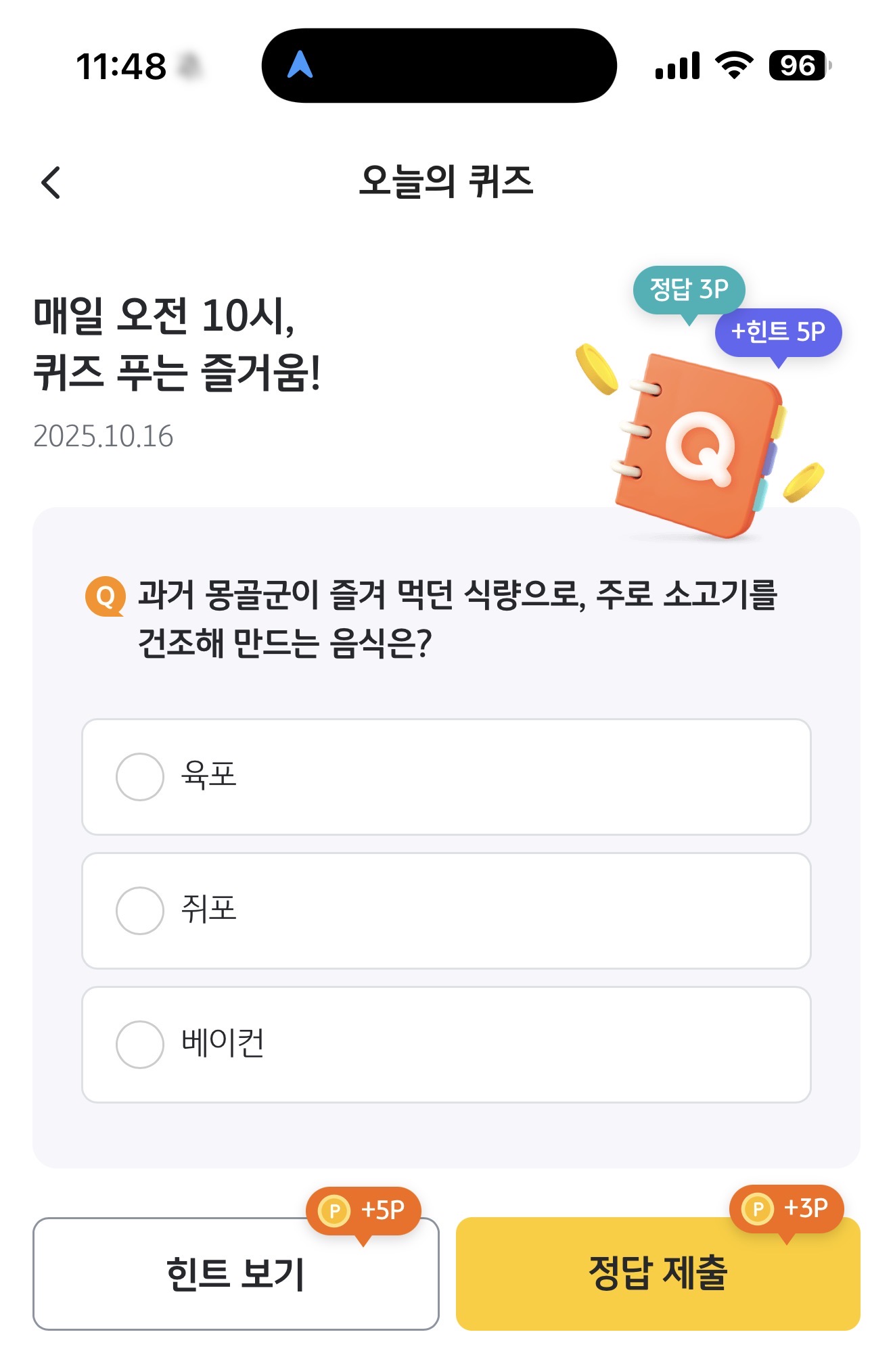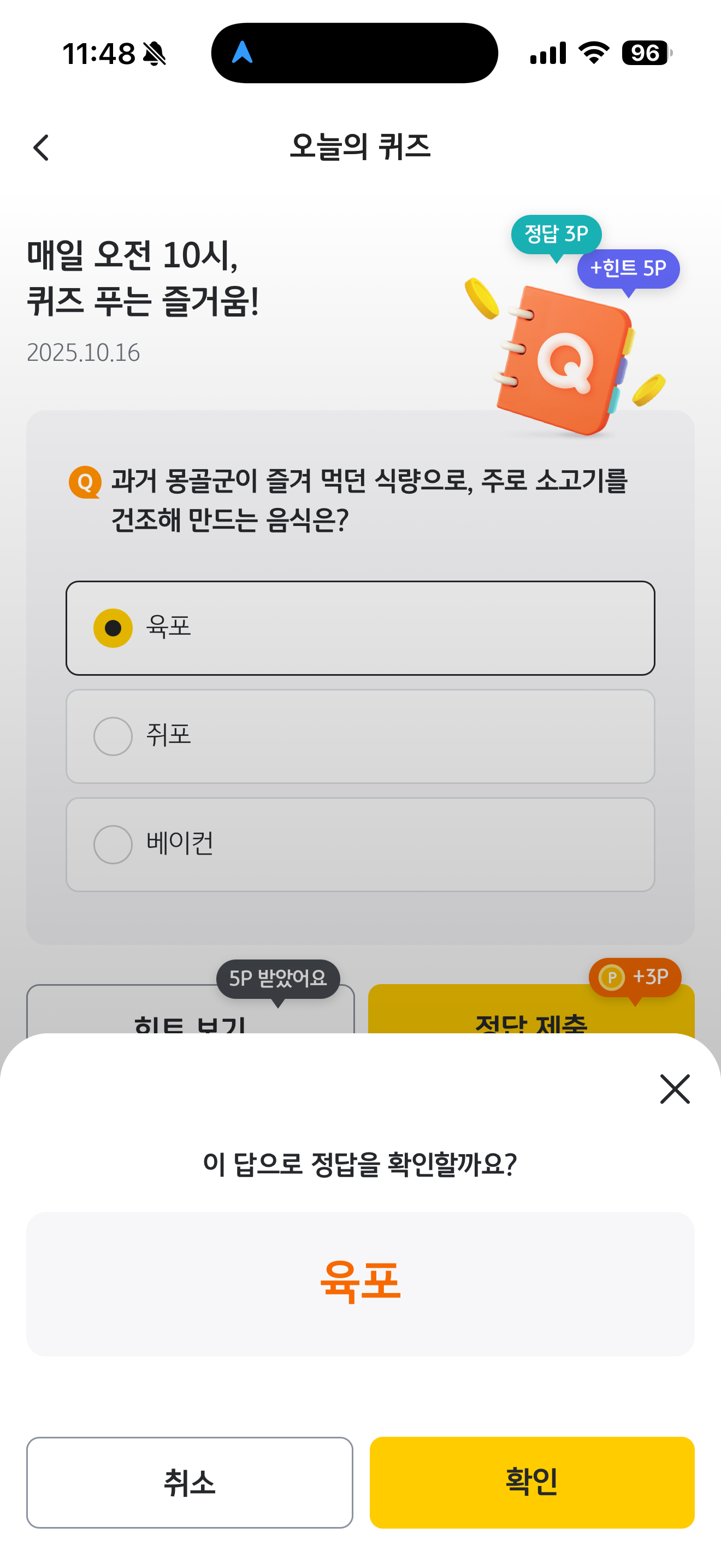 KB Pay 오늘의 퀴즈 정답은 육포 입니다