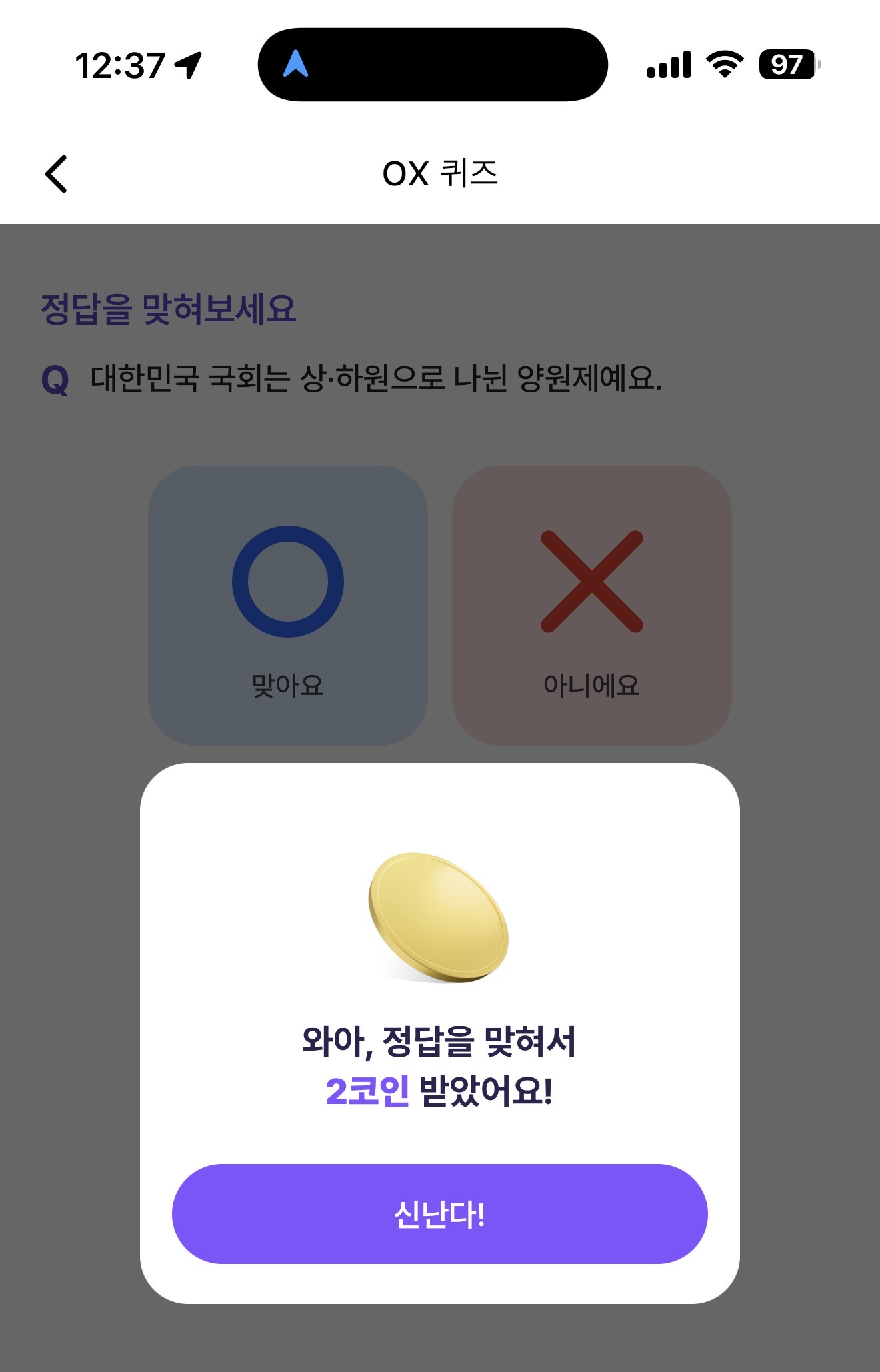 비트버니 오늘의 퀴즈 OX 퀴즈 10월 17일 정답(대한민국 국회는 상 하원으로 나뉜 양원제예요)