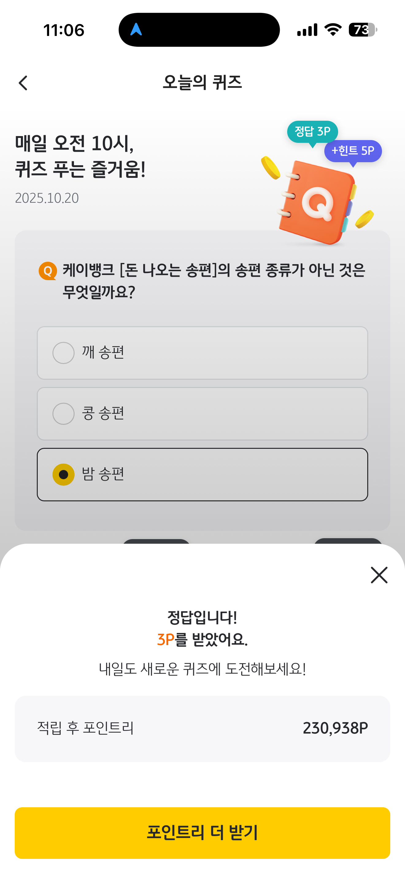 KB Pay 오늘의 퀴즈 정답은 밤 송편 입니다