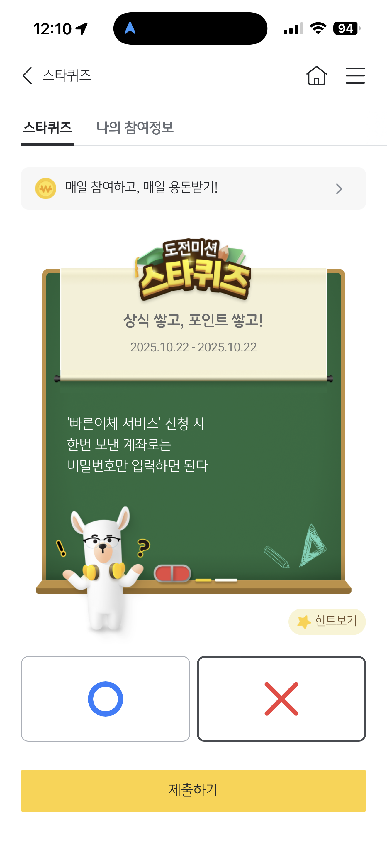 '빠른이체 서비스' 신청 시 한번 보낸 계좌로는 비밀번호만 입력하면 된다 O, X 퀴즈인데요. 빠른이체 서비스를 신청하면 간편하게 비밀번호만 입력하면 될까요? 잘 참고해서 빠른이체 서비스 활용해 보세요