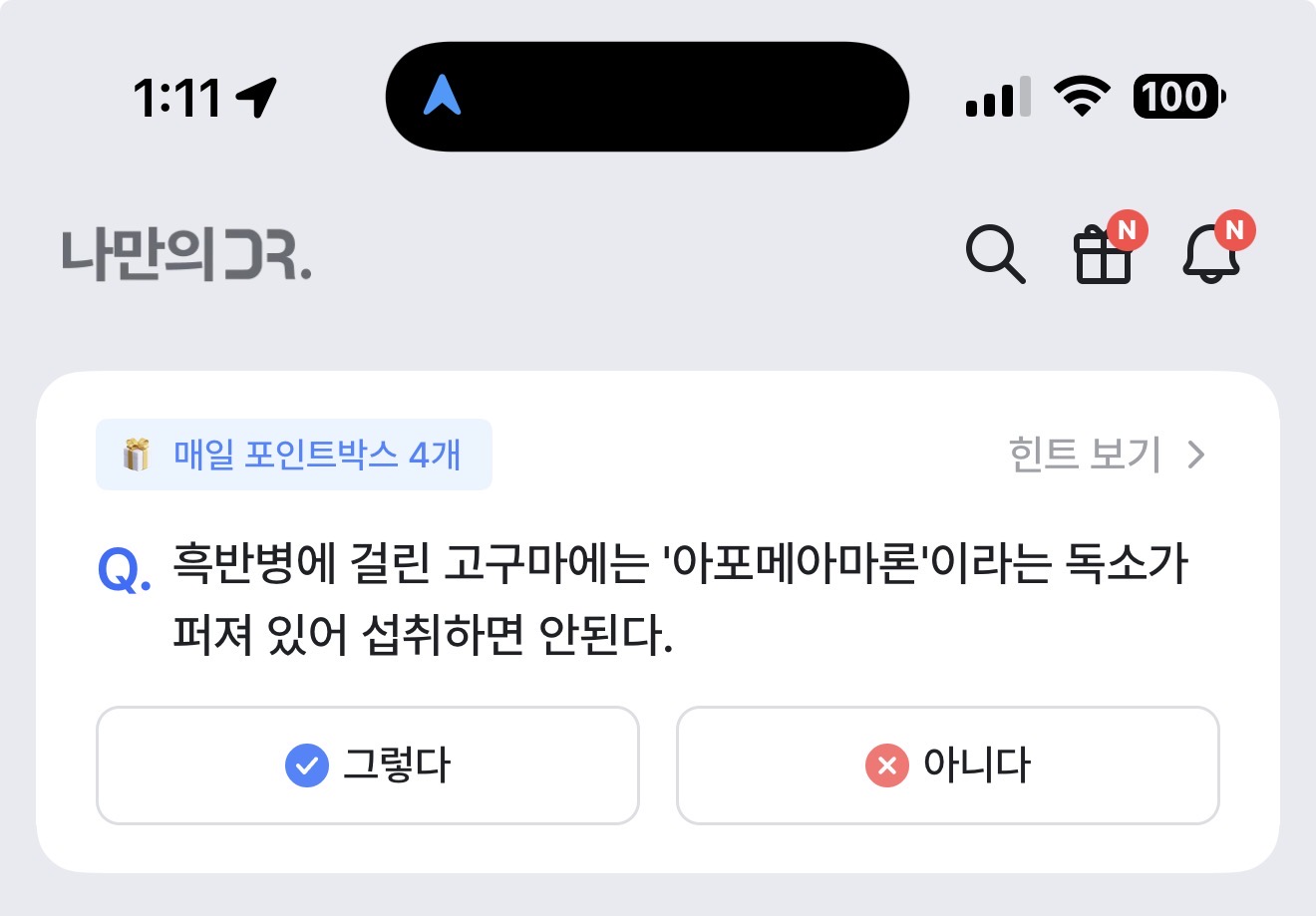 나만의 닥터 퀴즈 정답은 그렇다 입니다