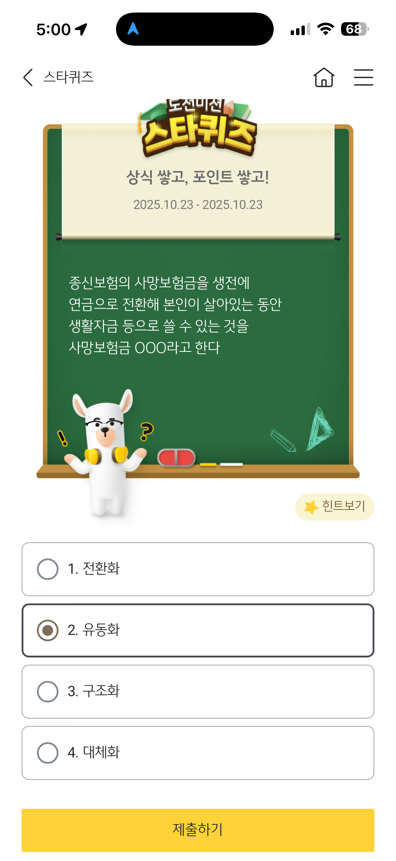 KB스타뱅킹 스타퀴즈 10월 23일 문제입니다