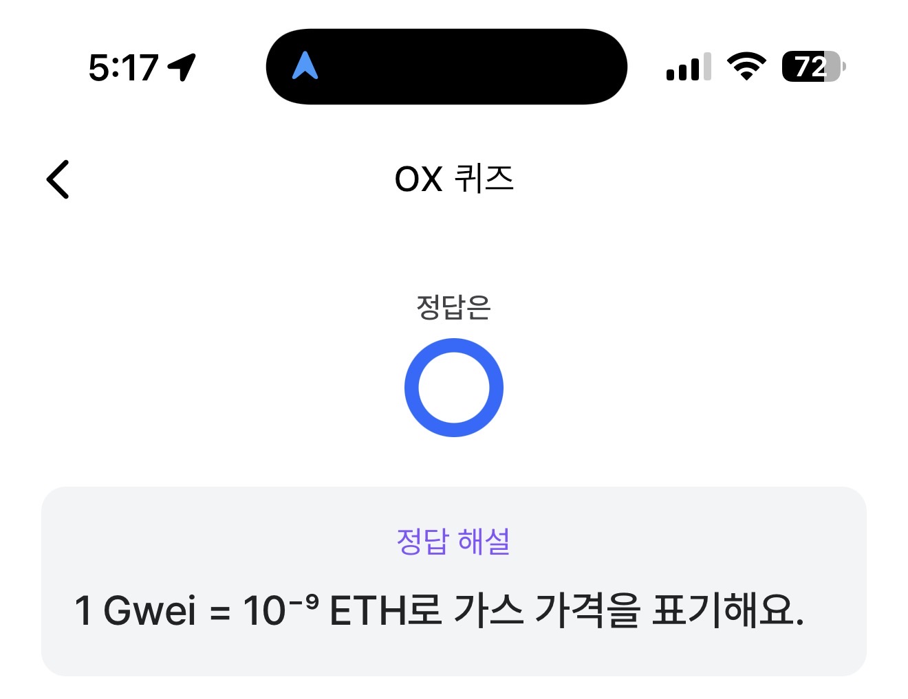 Gwei는 1 ETH의 10억분의 1을 뜻하는 수수료 단위예요 O, X 퀴즈인데요. Gwei는 생소한 용어죠. ETH도 무슨 의미인지 모르시죠. 잘 참고해서 상식적으로 알아두세요