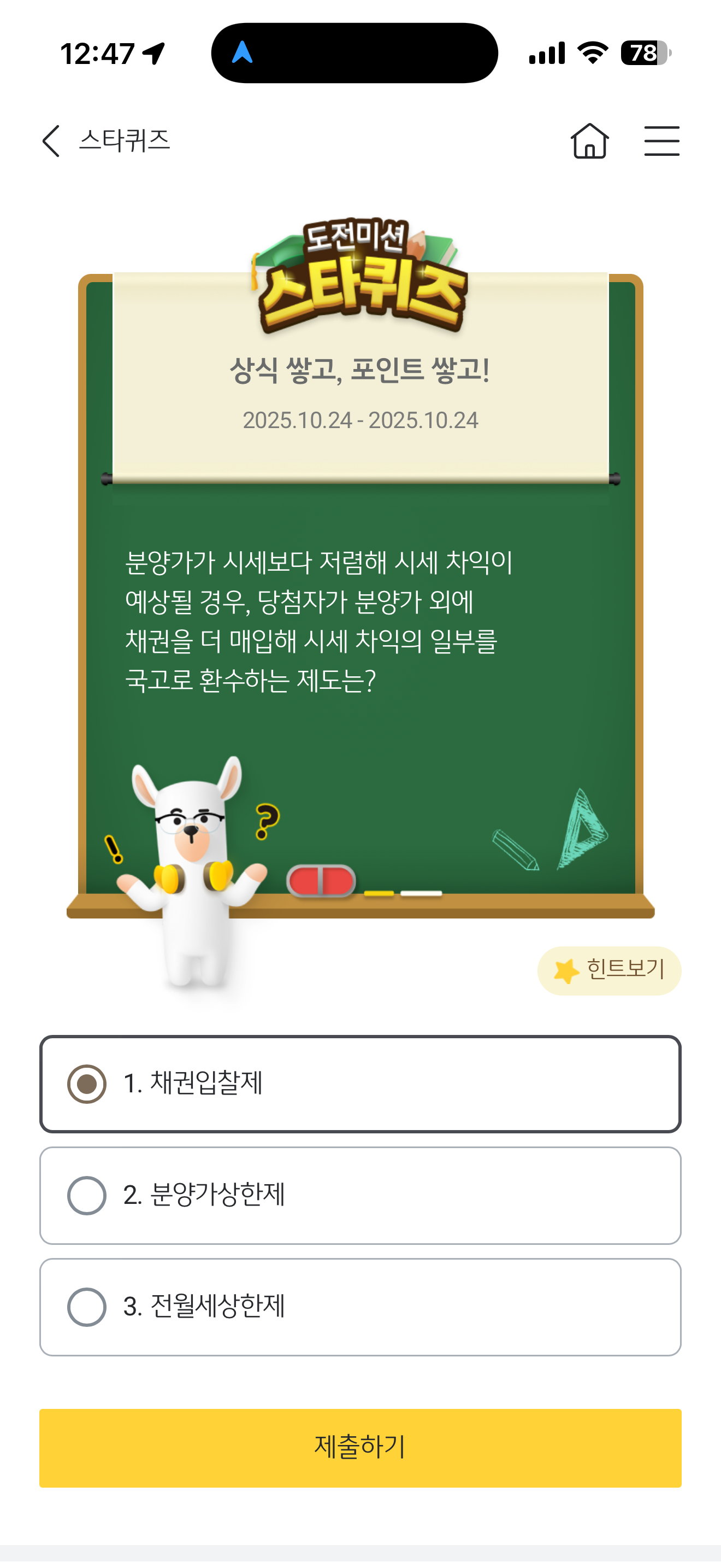 KB스타뱅킹 스타퀴즈 10월 24일 문제입니다