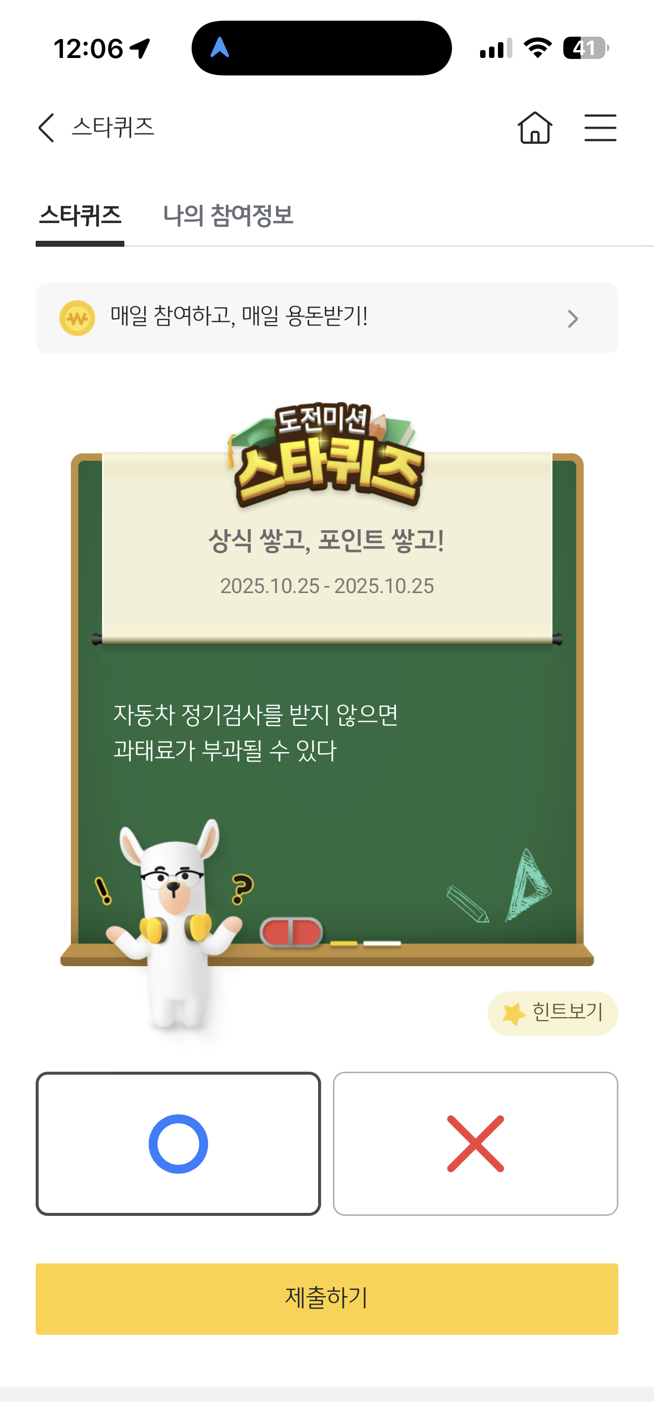 자동차 정기검사를 받지 않으면 과태료가 부과될 수 있다 O, X 퀴즈인데요. 자동차 정기검사는 자동차의 상태를 점검해 혹시나 모를 사고를 예방하기 위함입니다. 자동차 정기검사는 일정 기간을 두고 모두가 받아야 하는 검사 입니다