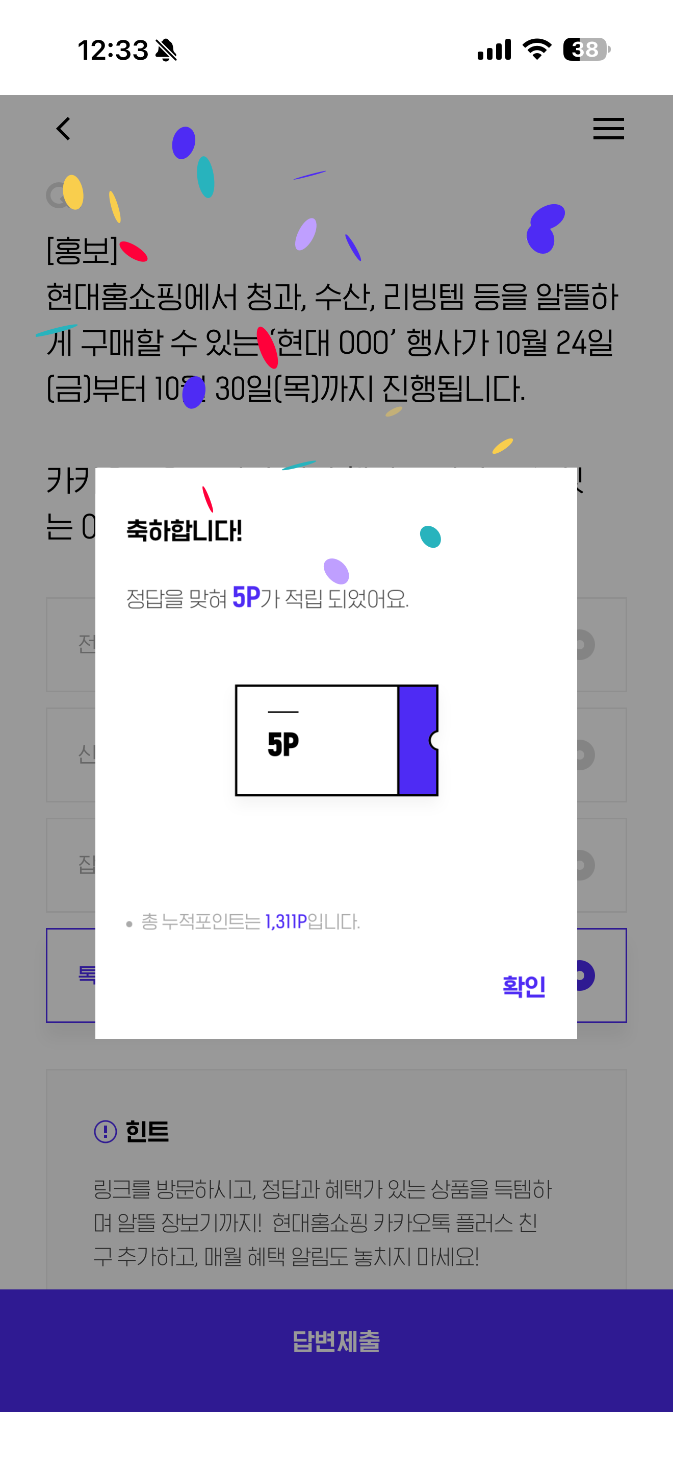H포인트 퀴즈 정답은 톡마트 입니다