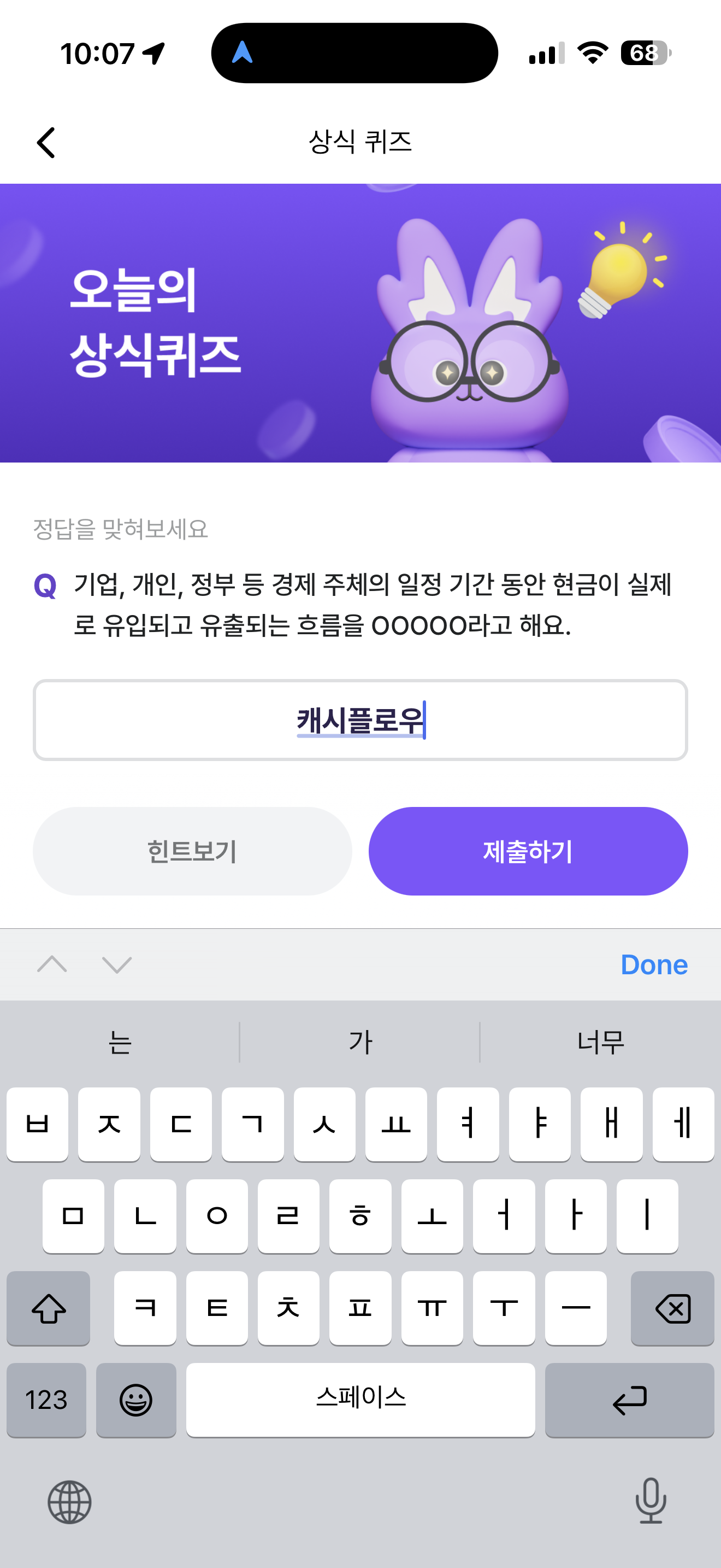 비트버니 오늘의 퀴즈 정답은 캐시플로우 입니다