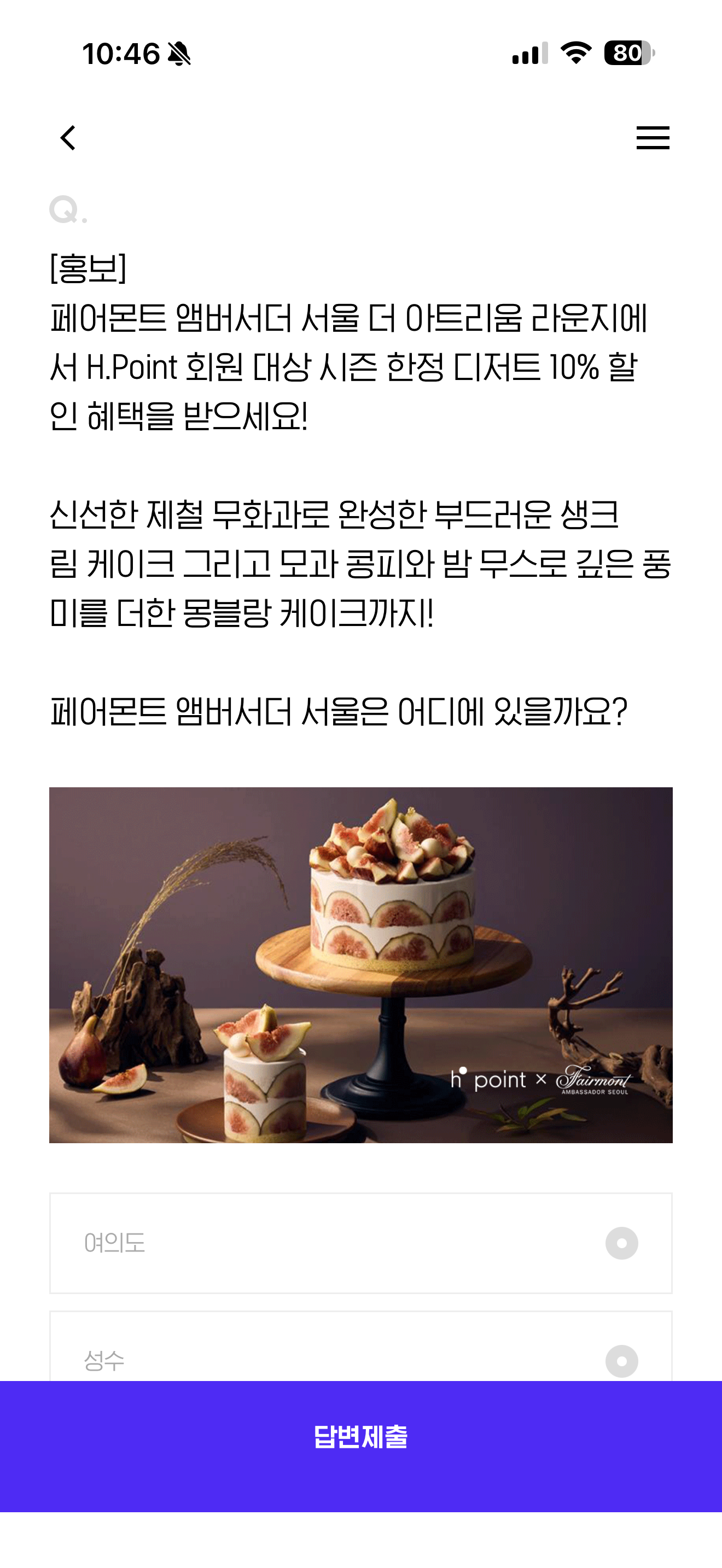 H포인트 퀴즈 정답은 여의도 입니다