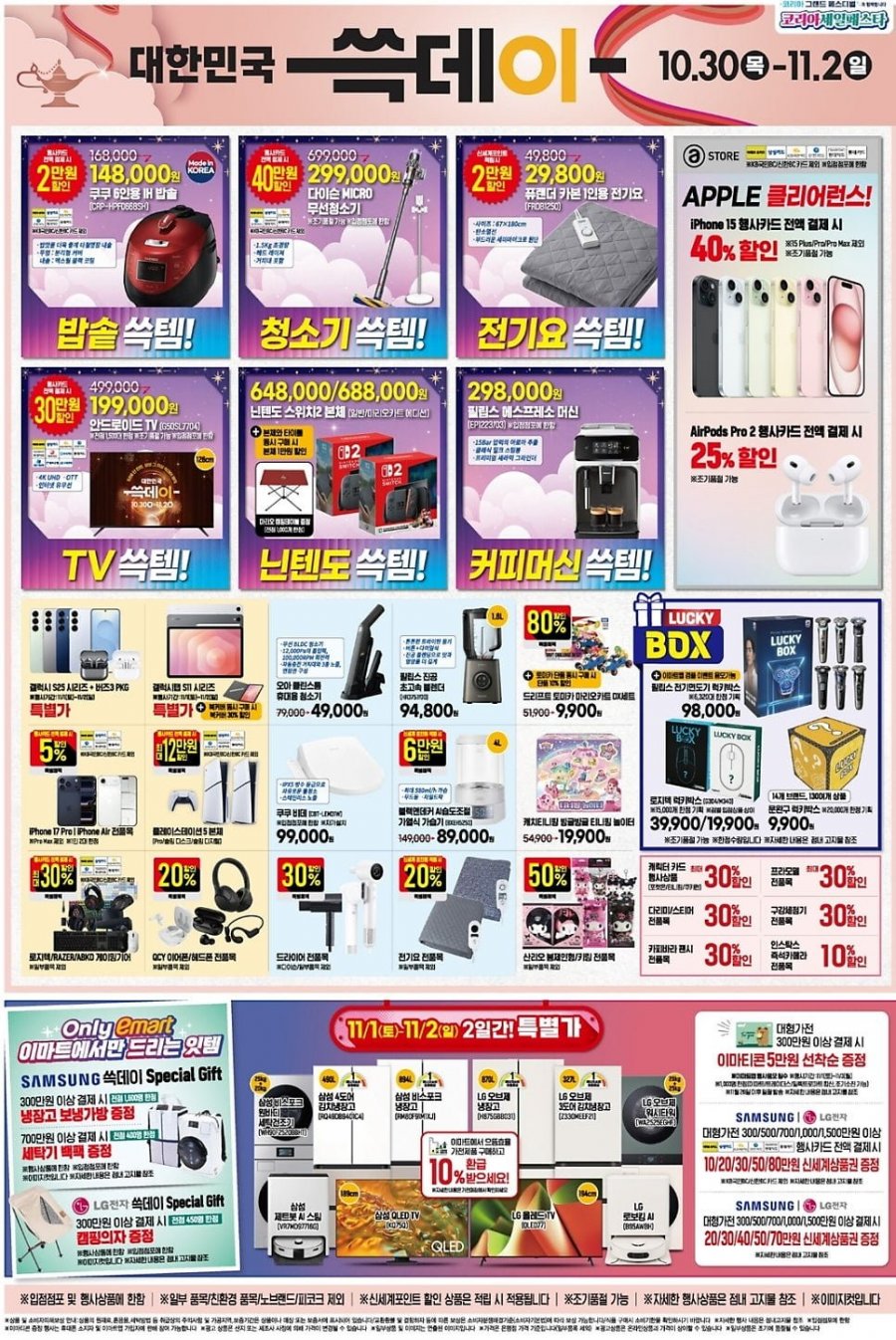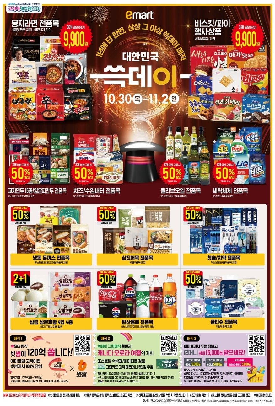 10월 30일부터 11월 2일까지 이마트 쓱데이 행사가 시작됩니다. 이마트 할인 행사에서 어떤 꿀템들 있는지 전단지 잘 확인해 보세요