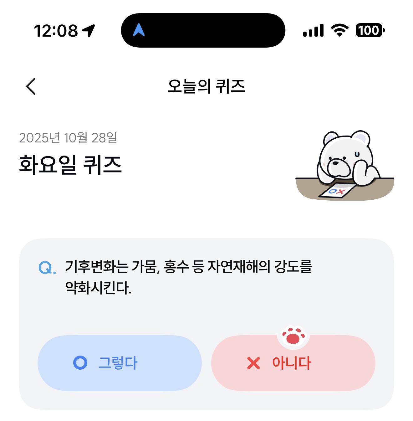 기후행동 기회소득 오늘의 퀴즈 정답은 아니다 입니다
