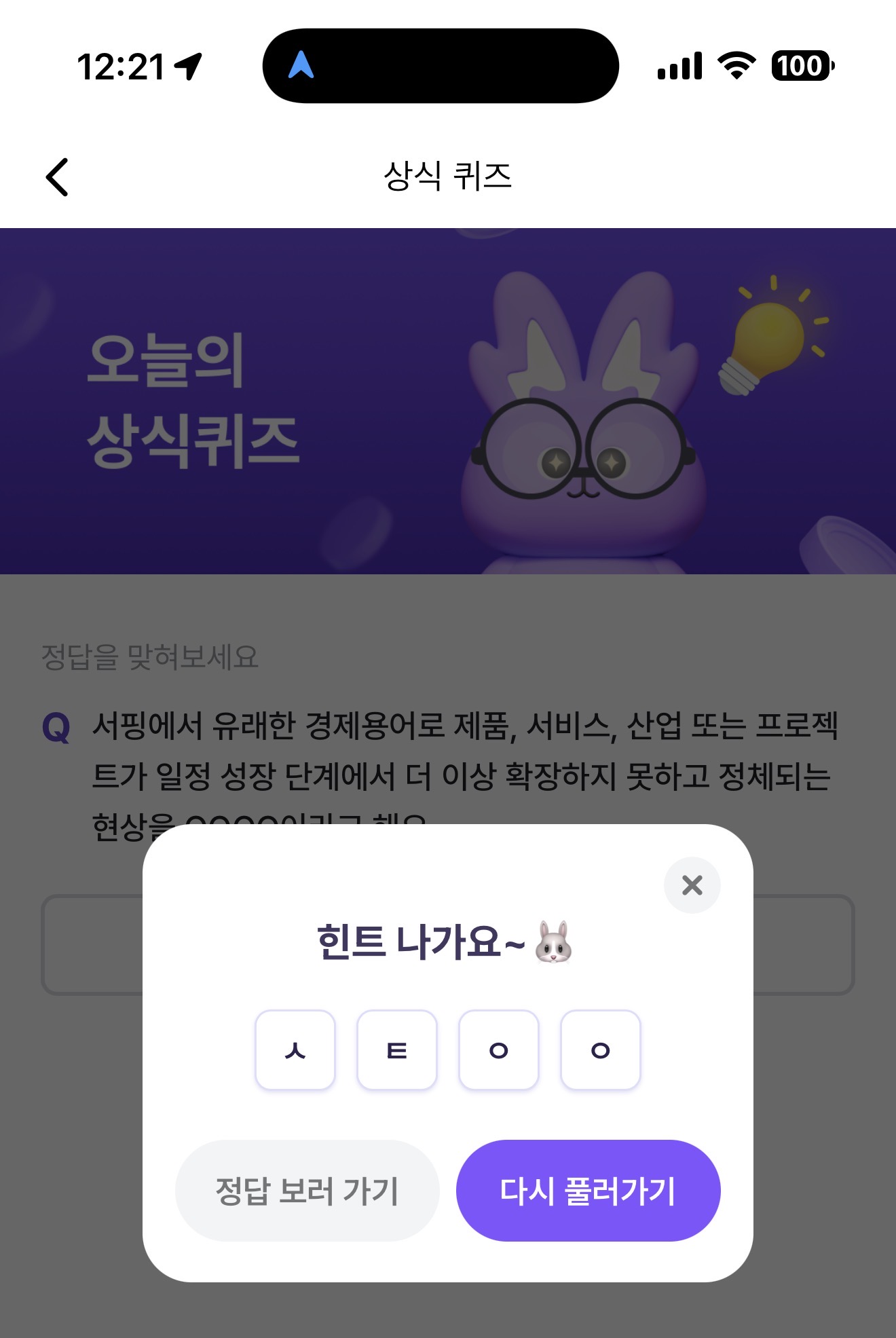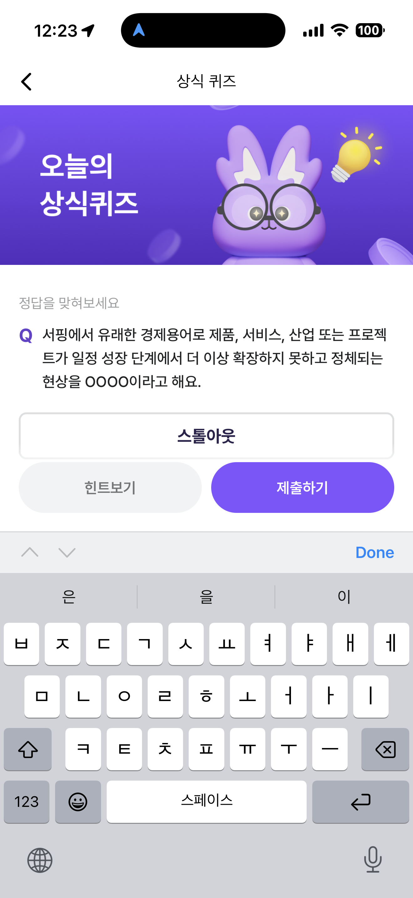 비트버니 오늘의 퀴즈 10월 28일 ㅅㅌㅇㅇ 정답(서핑에서 유래한 경제용어로 제품, 서비스, 산업 또는 프로젝트가 일정 성장 단계에서 더 이상 확장하지 못하고 정체되는 현상을 OOOO이라고 해요)