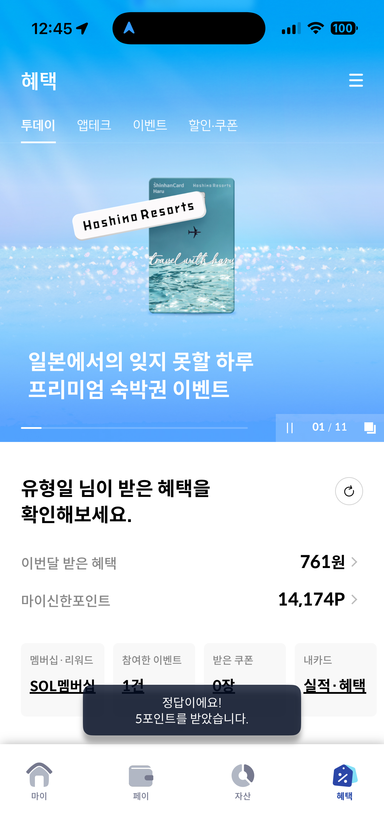 신한카드 퀴즈팡팡 정답은 O 입니다