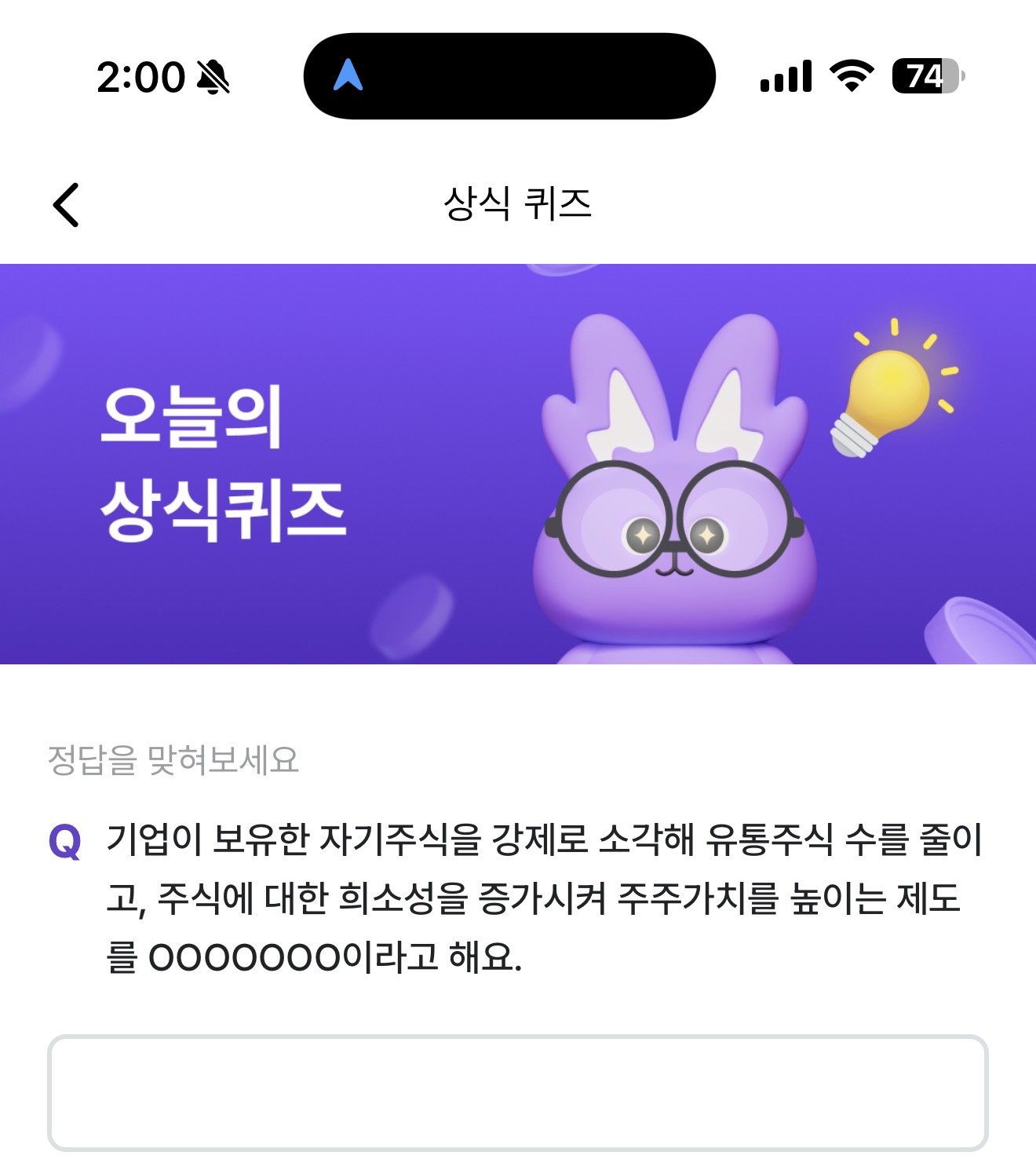 비트버니 오늘의 퀴즈 10월 31일 ㅈㅅㅈㅇㅁㅅㄱ 정답(기업이 보유한 자기주식을 강제로 소각해 유통주식 수를 줄이고, 주식에 대한 희소성을 증가시켜 주주가치를 높이는 제도를 OOOOOOO이라고 해요)