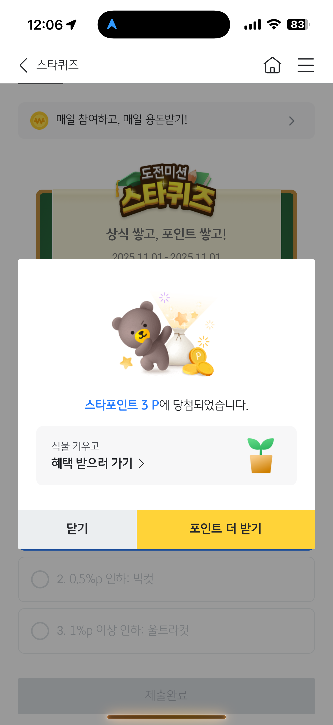 KB스타뱅킹 스타퀴즈 정답은 0.25%p 인하: 베이비컷 입니다