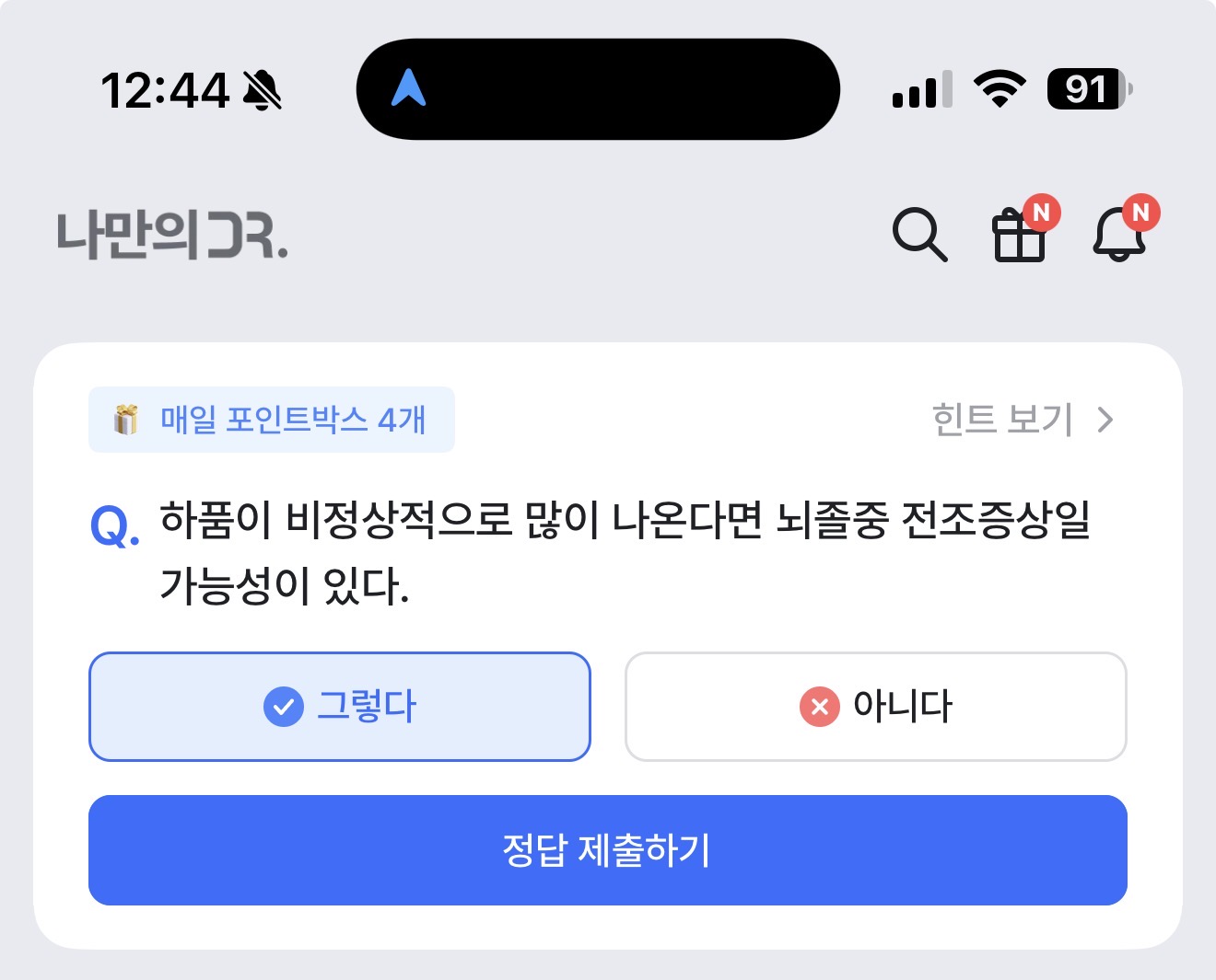 하품이 비정상적으로 많이 나온다면 뇌졸중 전조증상일 가능성이 있다. 그렇다 아니다 선택하면 되는데요. 하품이 비정상적으로 나오는 사람들 있죠. 아무런 이유도 없이 나온다면 뭔가 몸에서 문제가 생겼다는 건데요. 과연 뇌졸증 전조증상일까요?