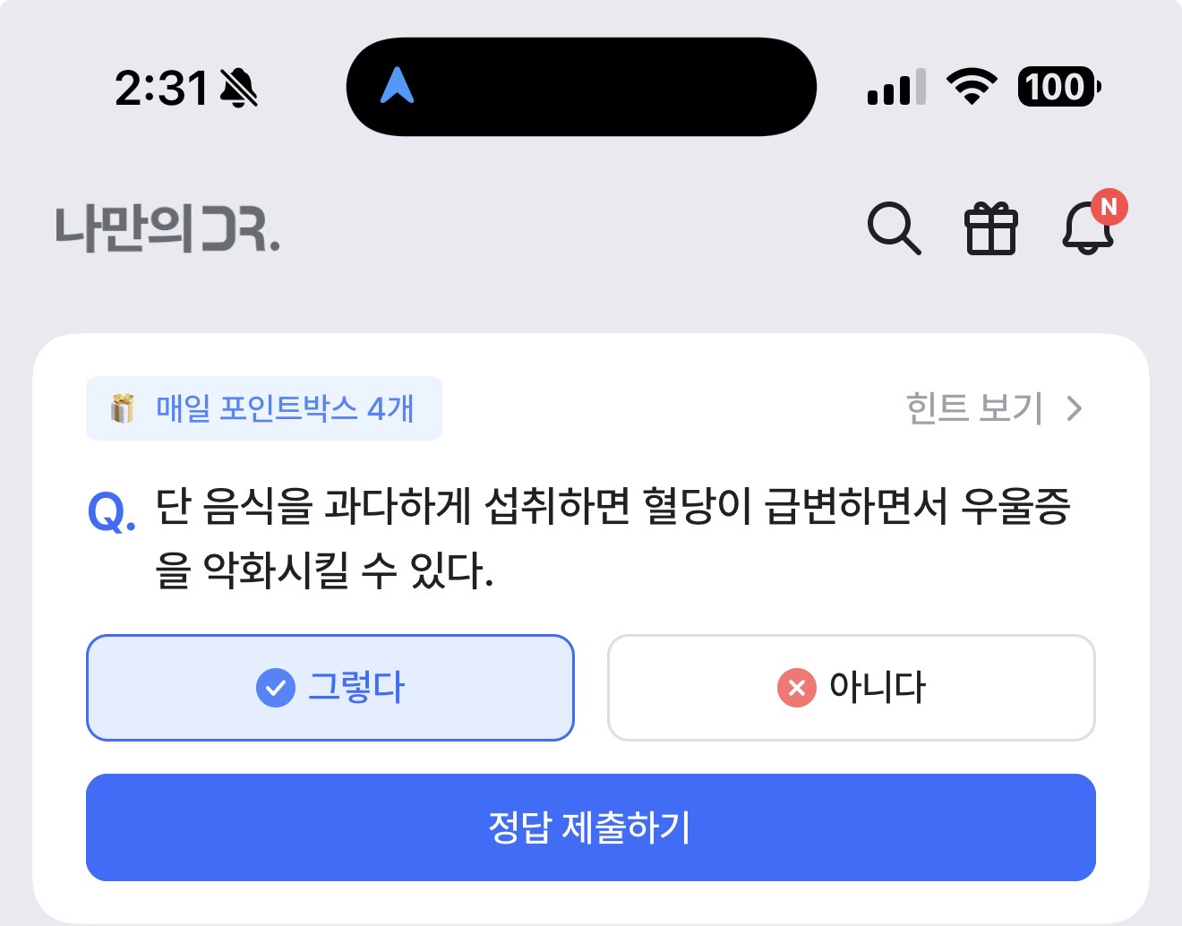 나만의 닥터 퀴즈 정답은 그렇다 입니다