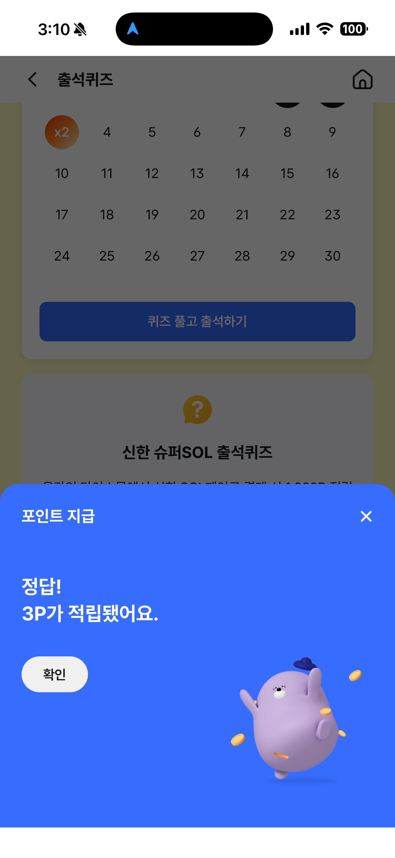 신한 슈퍼SOL 출석퀴즈 정답은 11월 14일 입니다