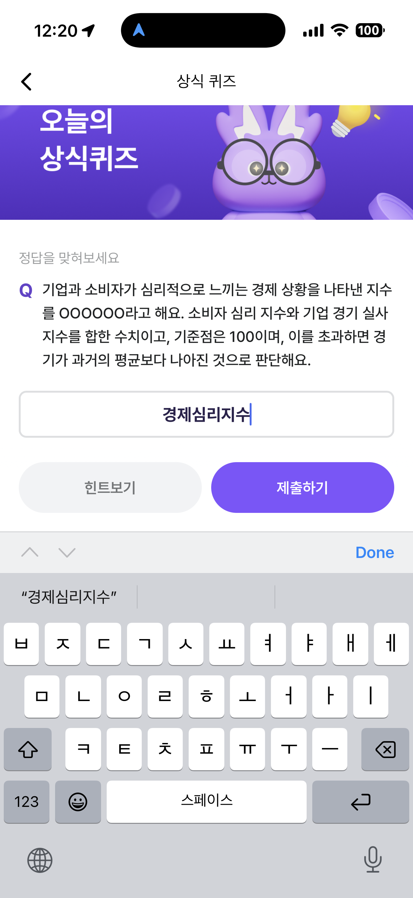 기업과 소비자가 심리적으로 느끼는 경제 상황을 나타낸 지수를 OOOOOO라고 해요. 소비자 심리 지수와 기업 경기 실사 지수를 합한 수치이고, 기준점은 100이며, 이를 초과하면 경기가 과거의 평균보다 나아진 것으로 판단해요. 주관식 퀴즈인데요.