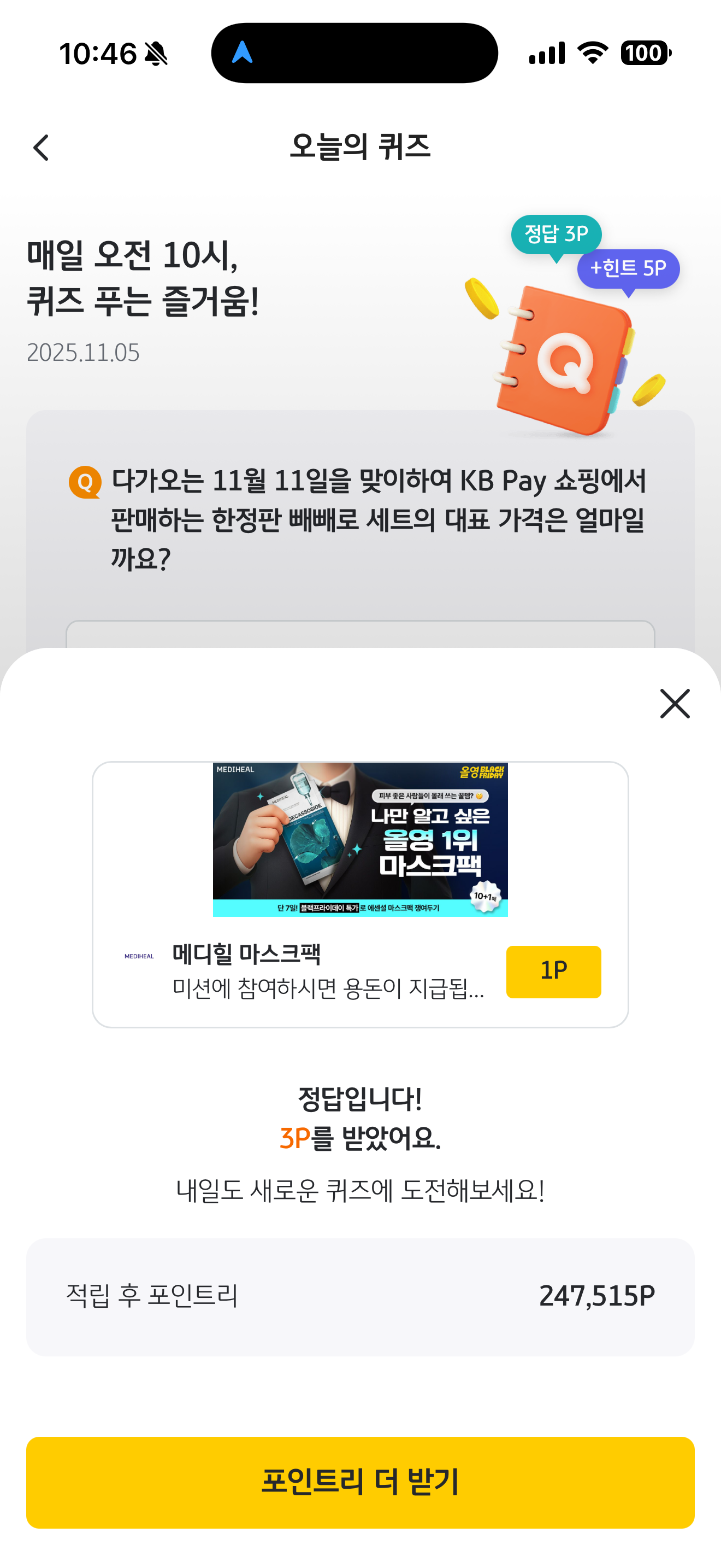 KB Pay 오늘의 퀴즈 11월 5일 문제입니다