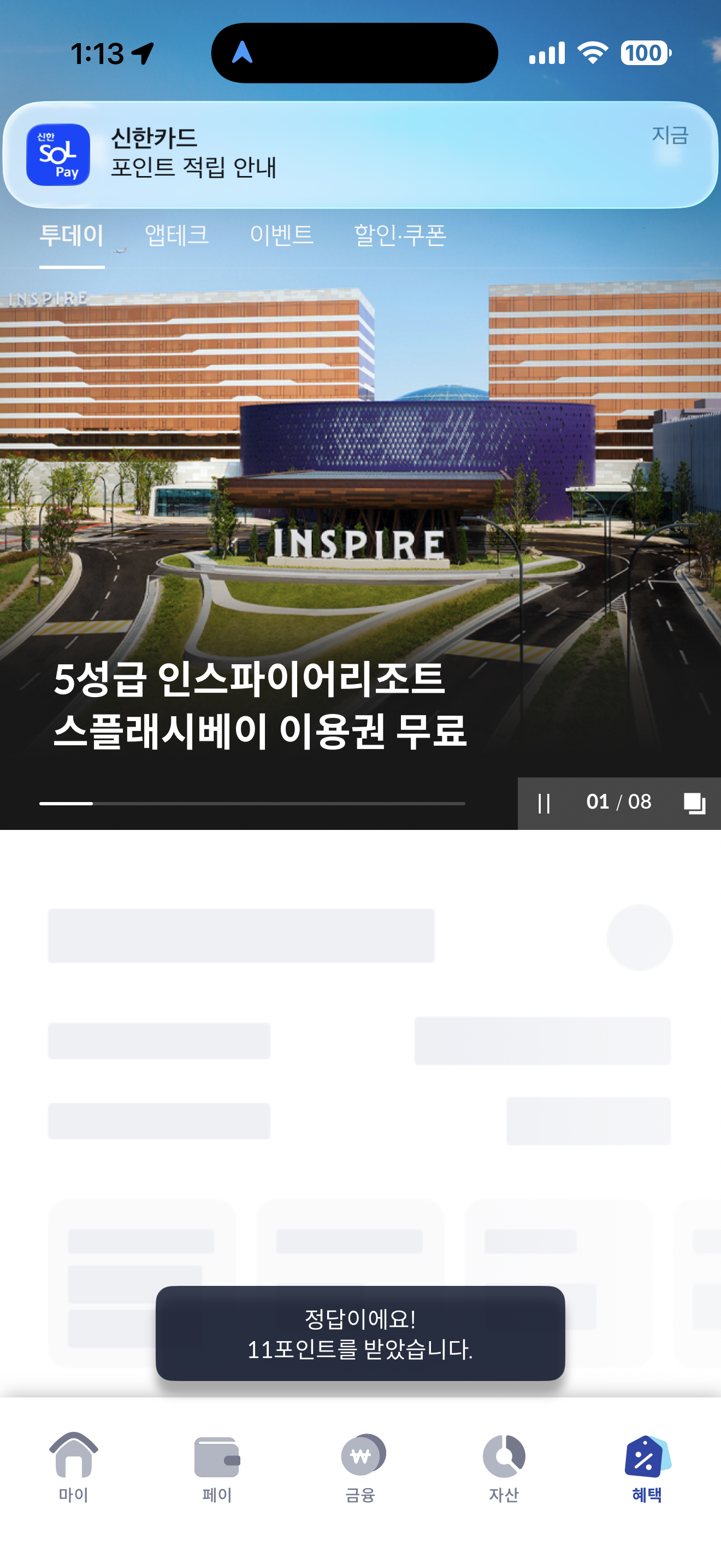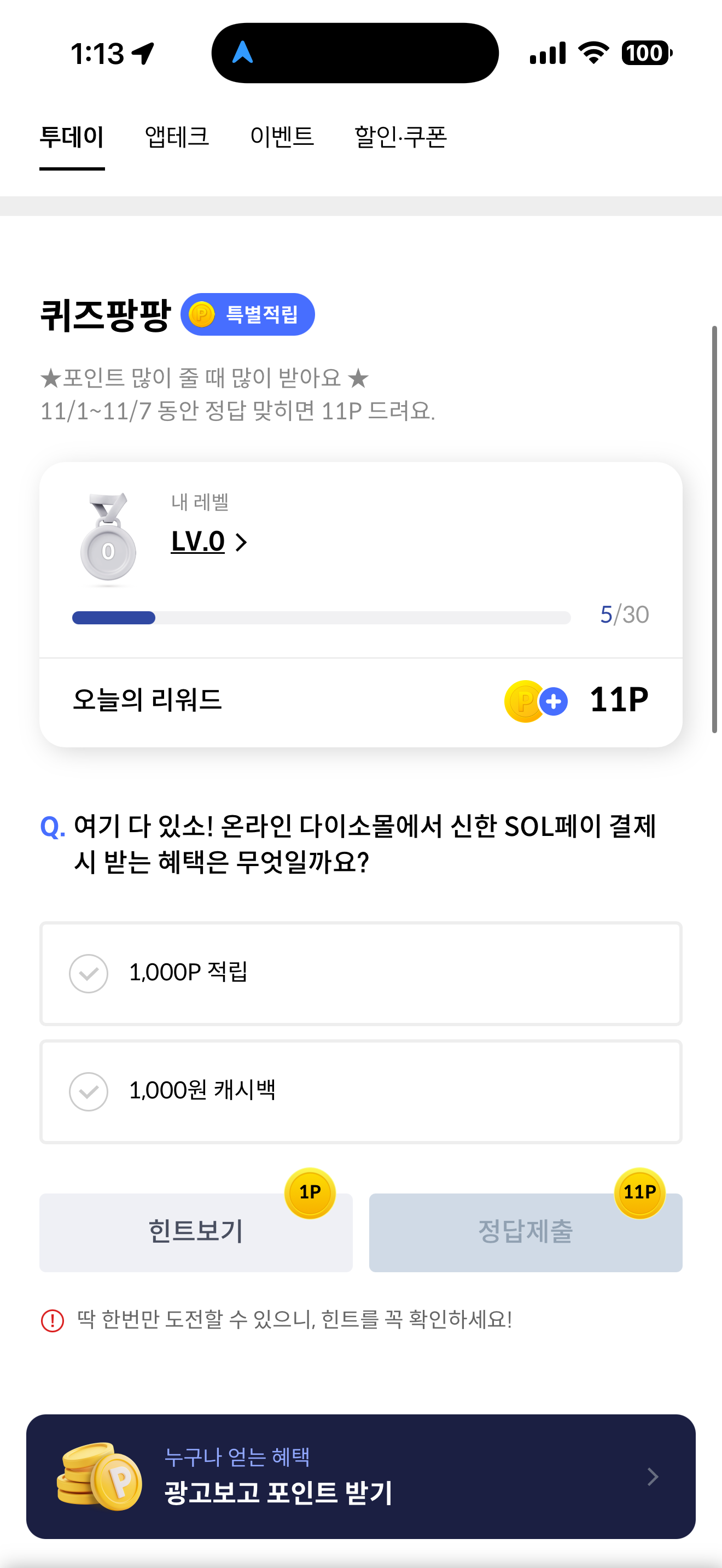 신한카드 퀴즈팡팡 정답은 1,000P 적립 입니다
