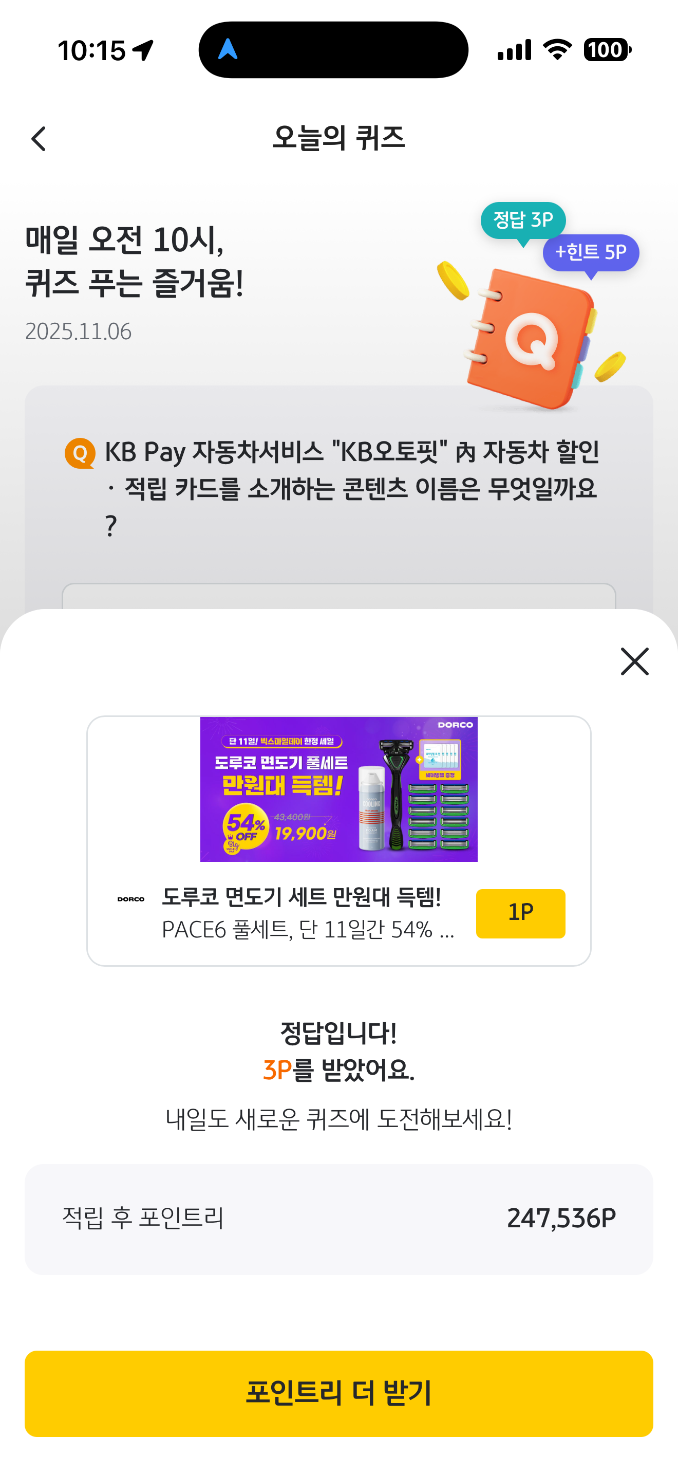 KB pay 오늘의 퀴즈 정답은 내 차 탈 때 마다 이득 입니다