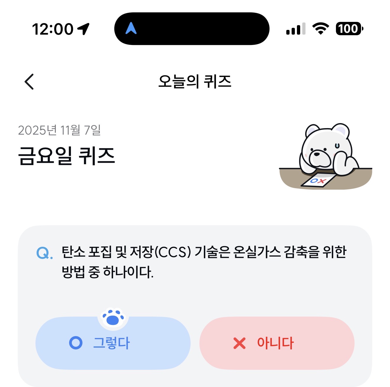 기후행동 기회소득 오늘의 퀴즈 정답은 그렇다 입니다