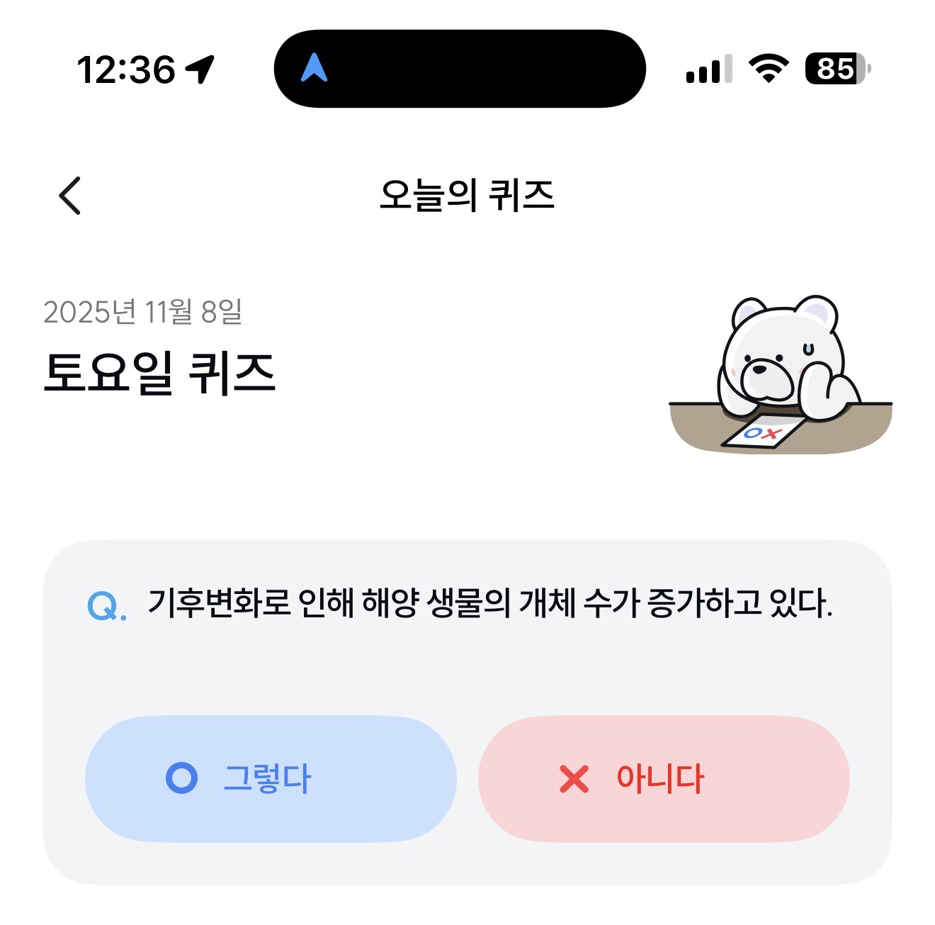 기후행동 기회소득 오늘의 퀴즈 정답은 아니다 입니다