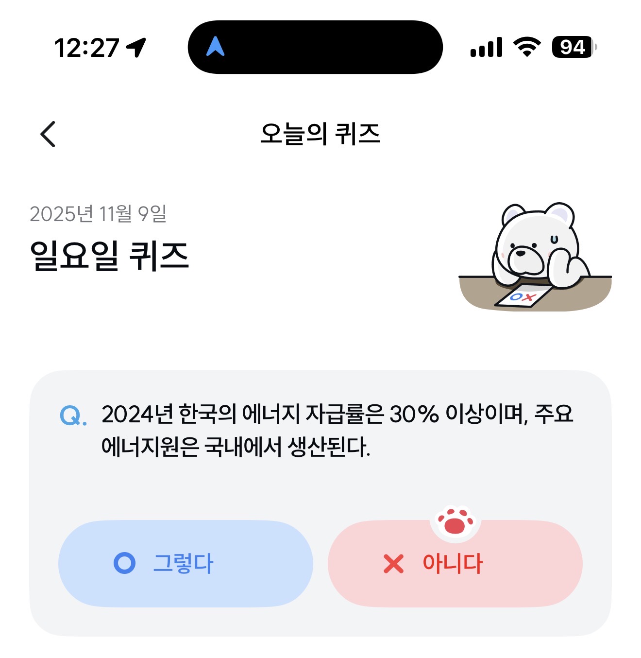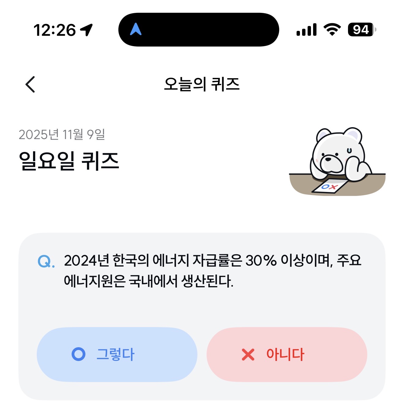 2024년 한국의 에너지 자급률은 30% 이상이며, 주요 에너지원은 국내에서 생산된다. 그렇다 아니다 선택하면 되는데요. 한국의 에너지 자급률이 30% 이상일까요? 아니면 그보다 못할까요? 에너지 자급률은 국가의 경쟁력을 올려주는 중요한 부분인데요. 참고해보세요