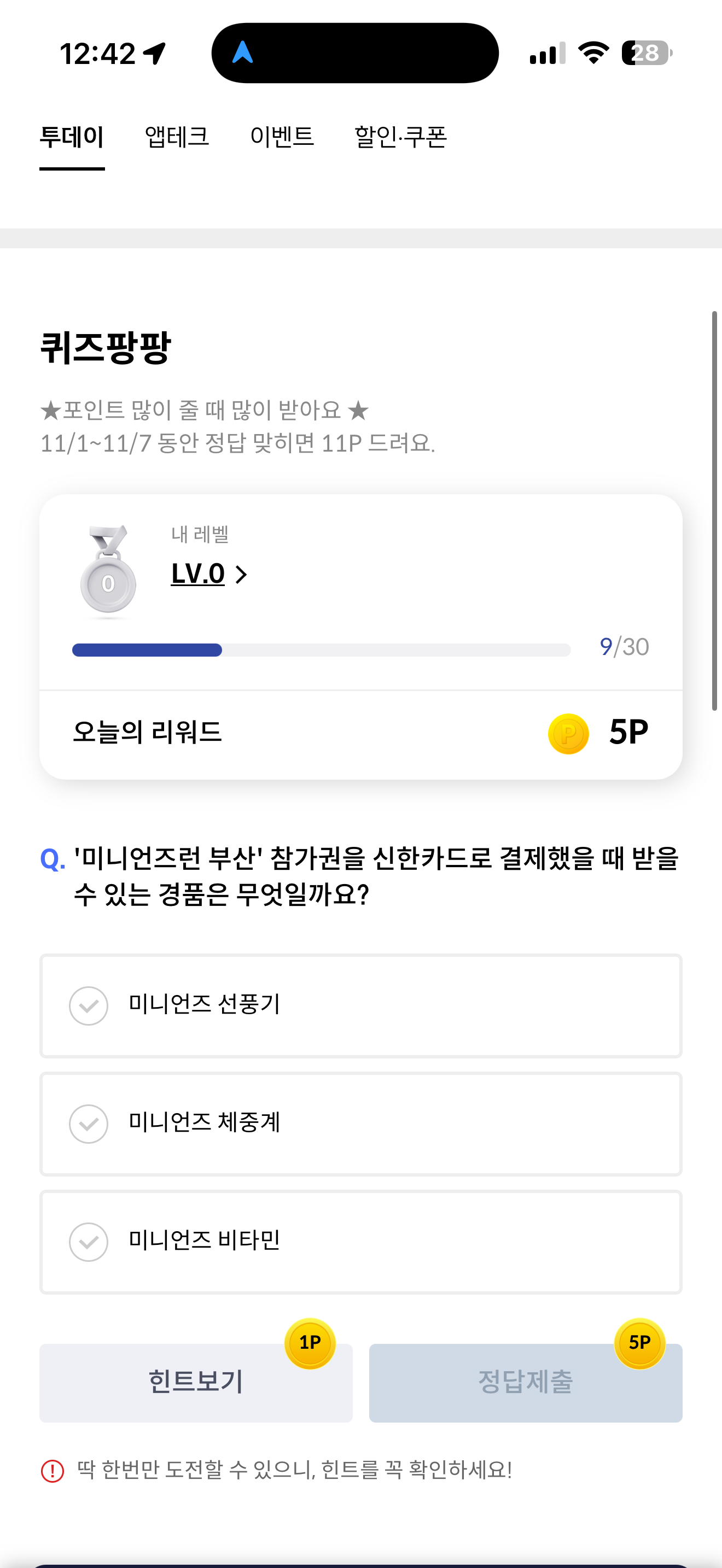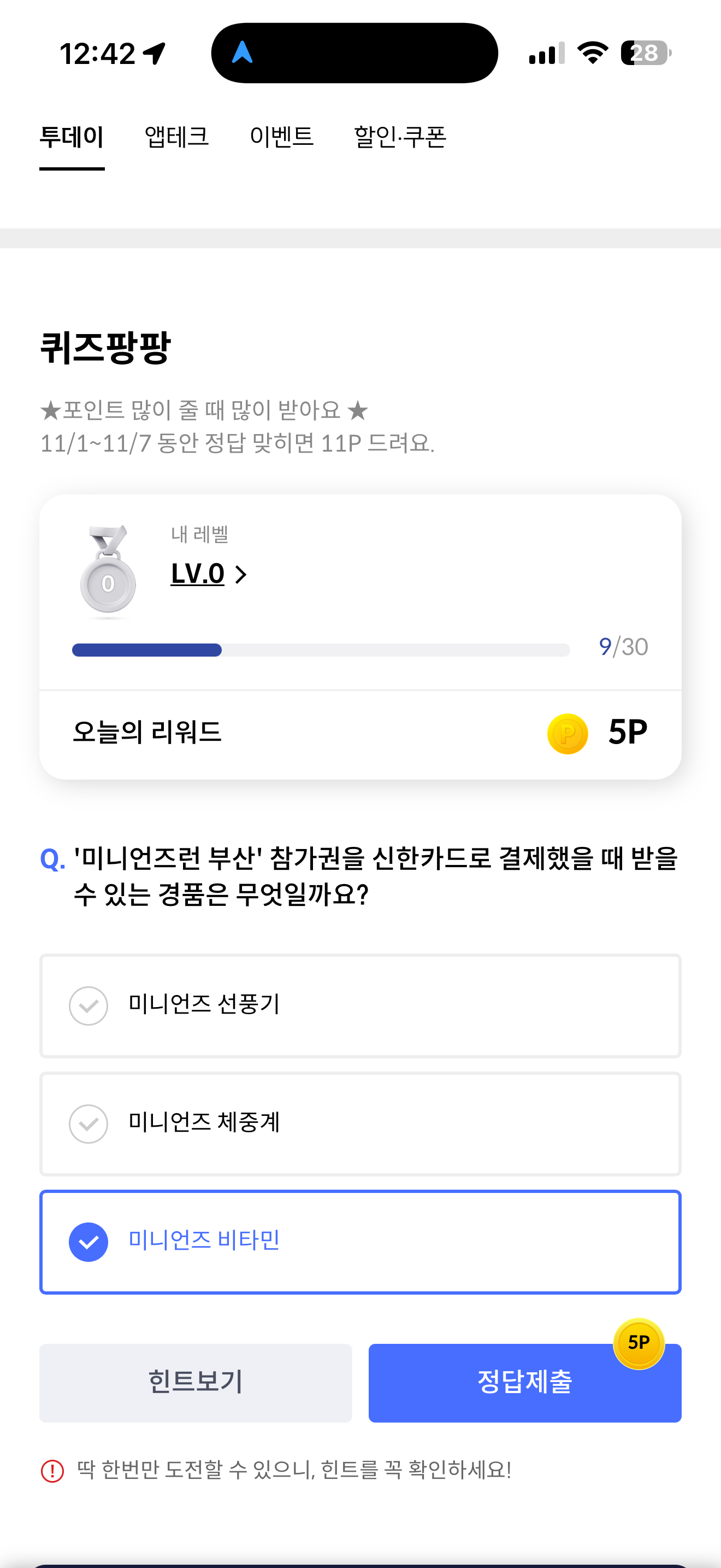 신한카드 퀴즈팡팡 정답은 미니언즈 비타민 입니다