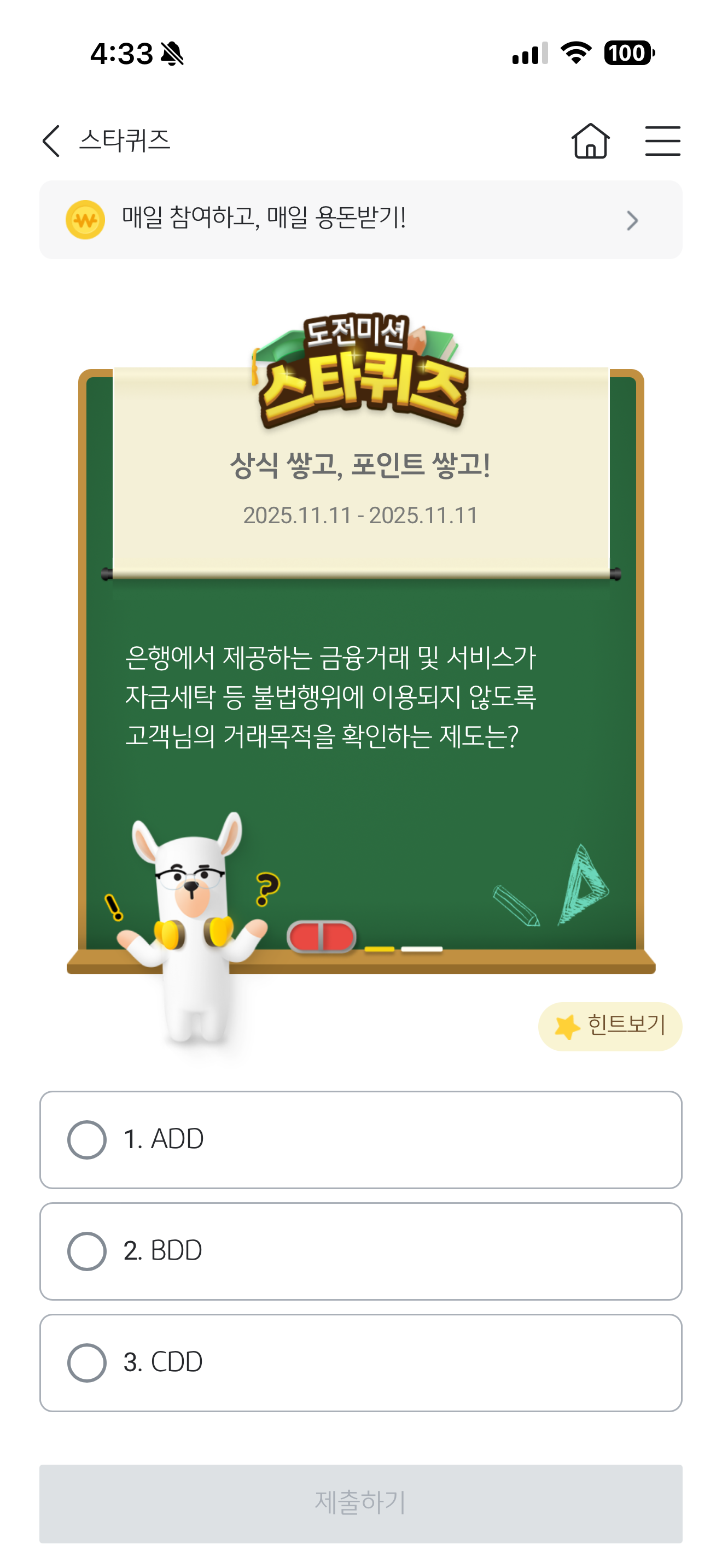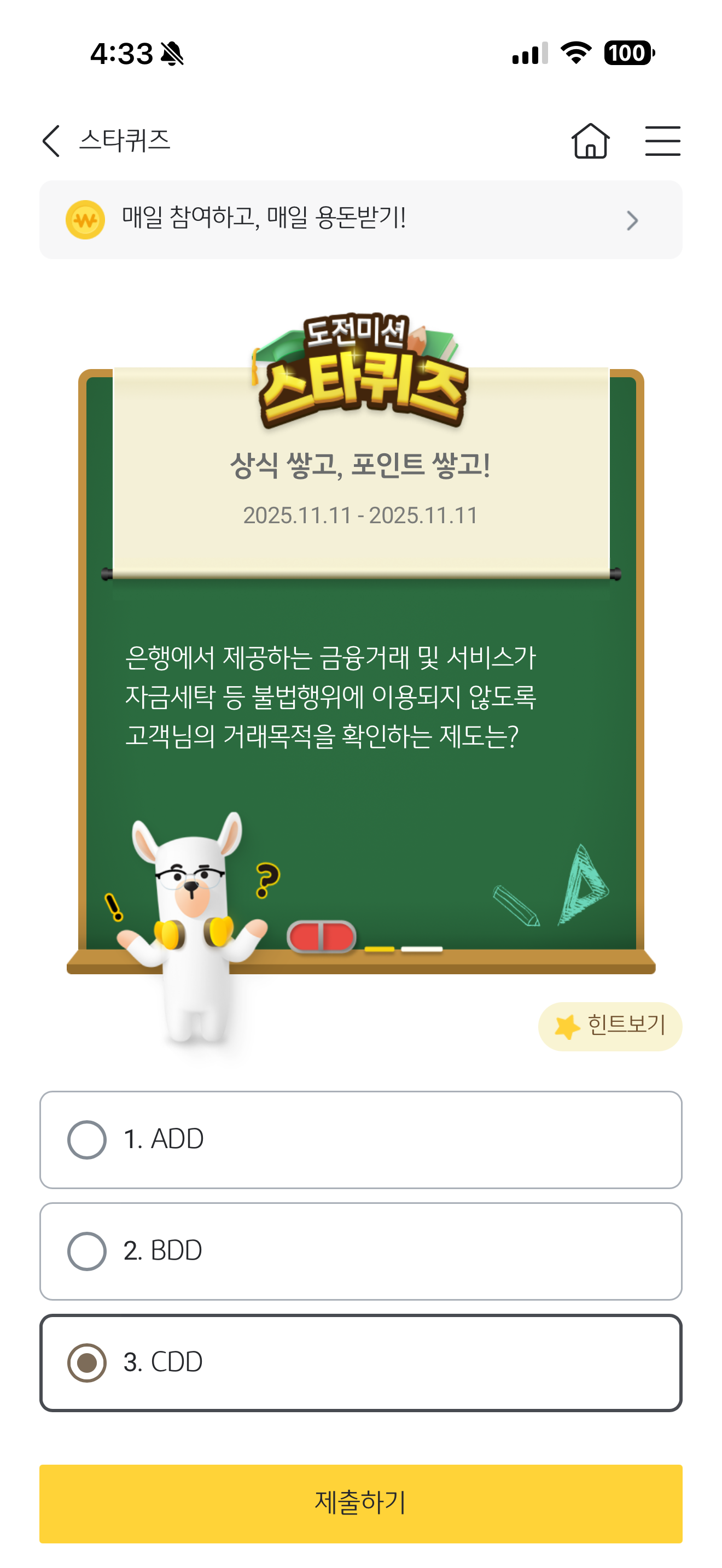 KB스타뱅킹 스타퀴즈 정답은 CDD 입니다
