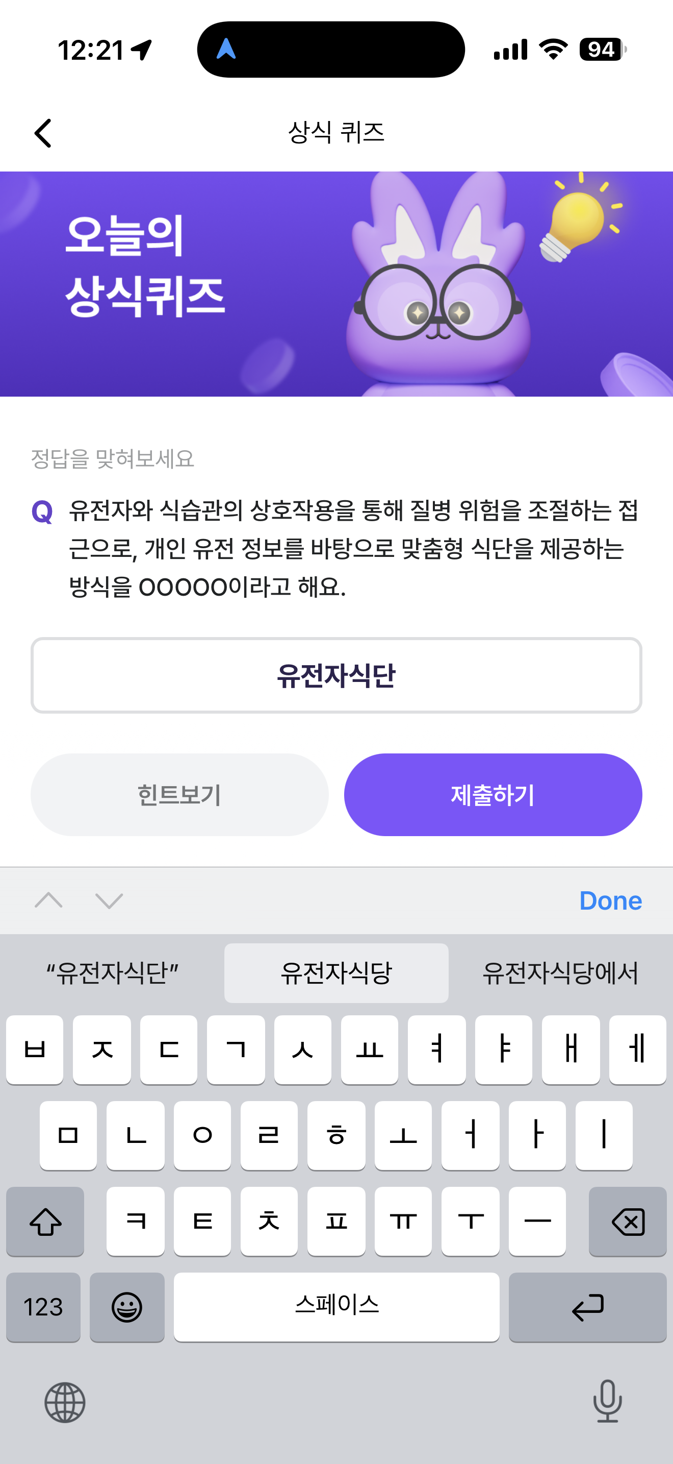비트버니 오늘의 퀴즈 정답은 유전자식단 입니다