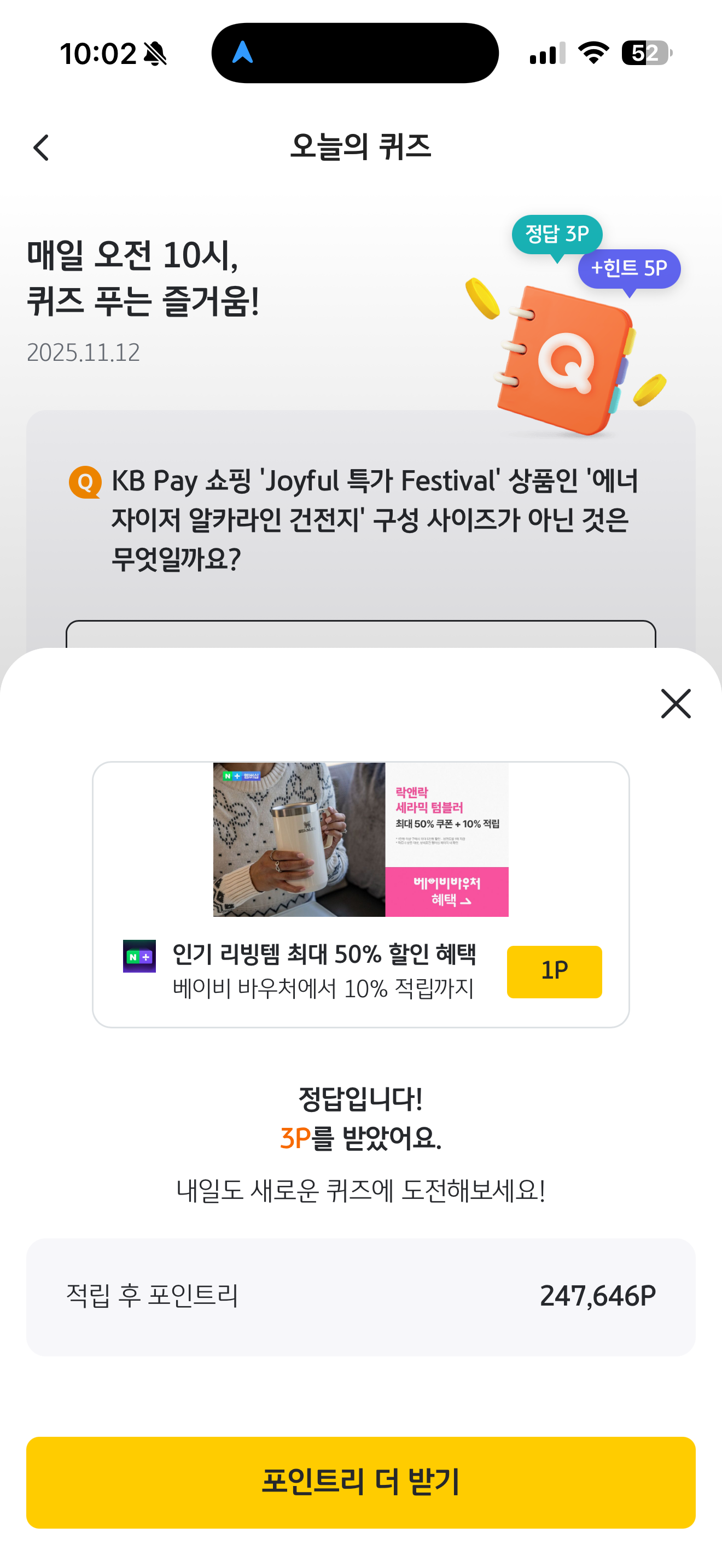 KB Pay 오늘의 퀴즈 11월 12일 문제입니다