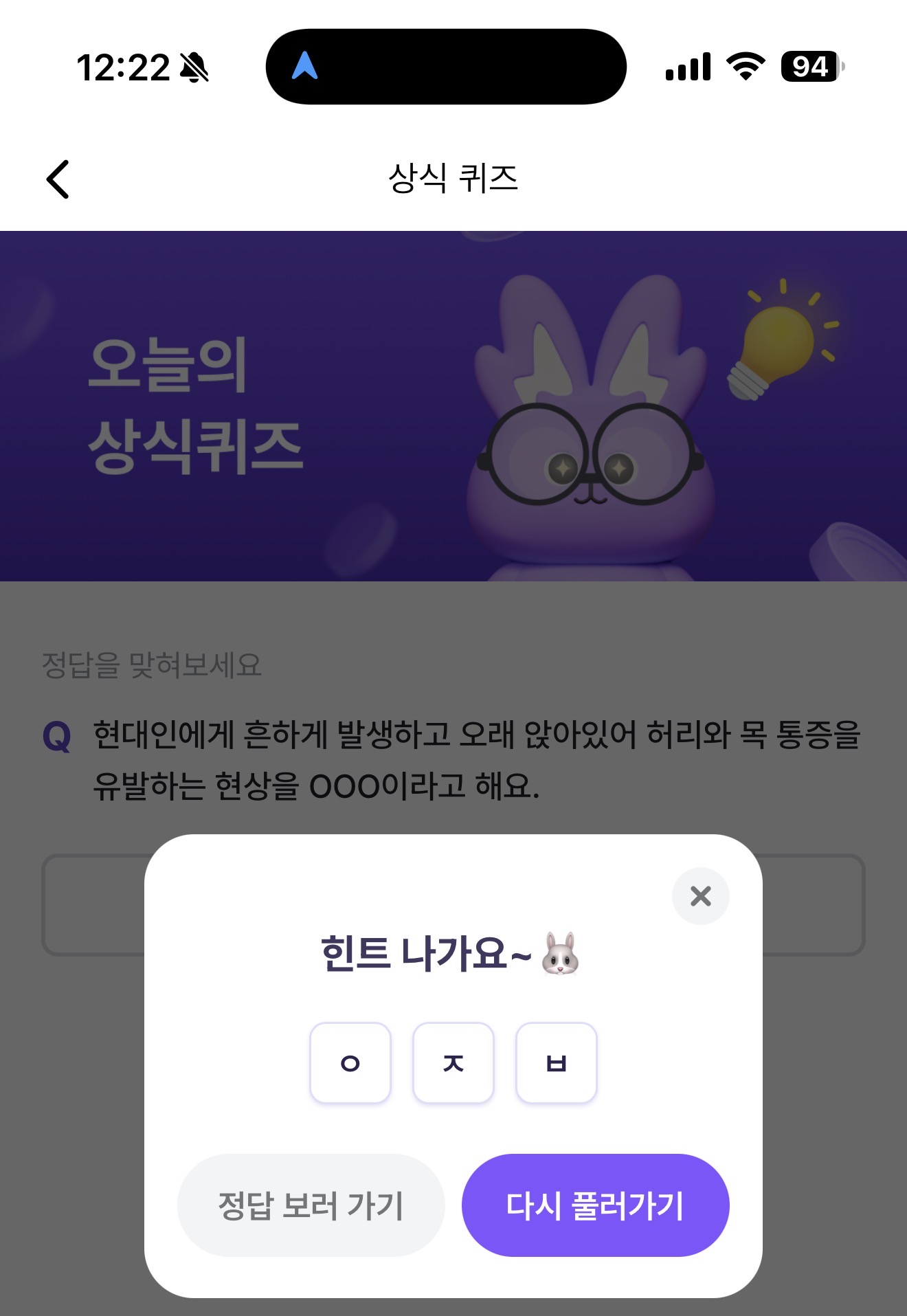 비트버니 오늘의 퀴즈 초성 힌트는 ㅇㅈㅂ 입니다