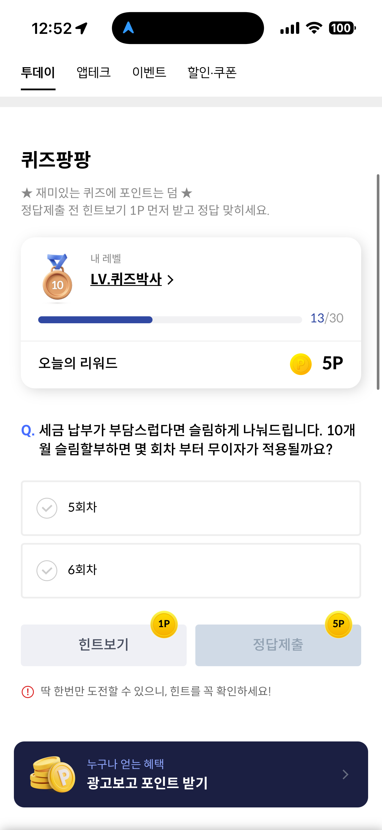 신한카드 퀴즈팡팡 11월 14일 정답(세금 납부가 부담스럽다면 슬림하게 나눠드립니다. 10개월 슬림할부하면 몇 회차 부터 무이자가 적용될까요?)
