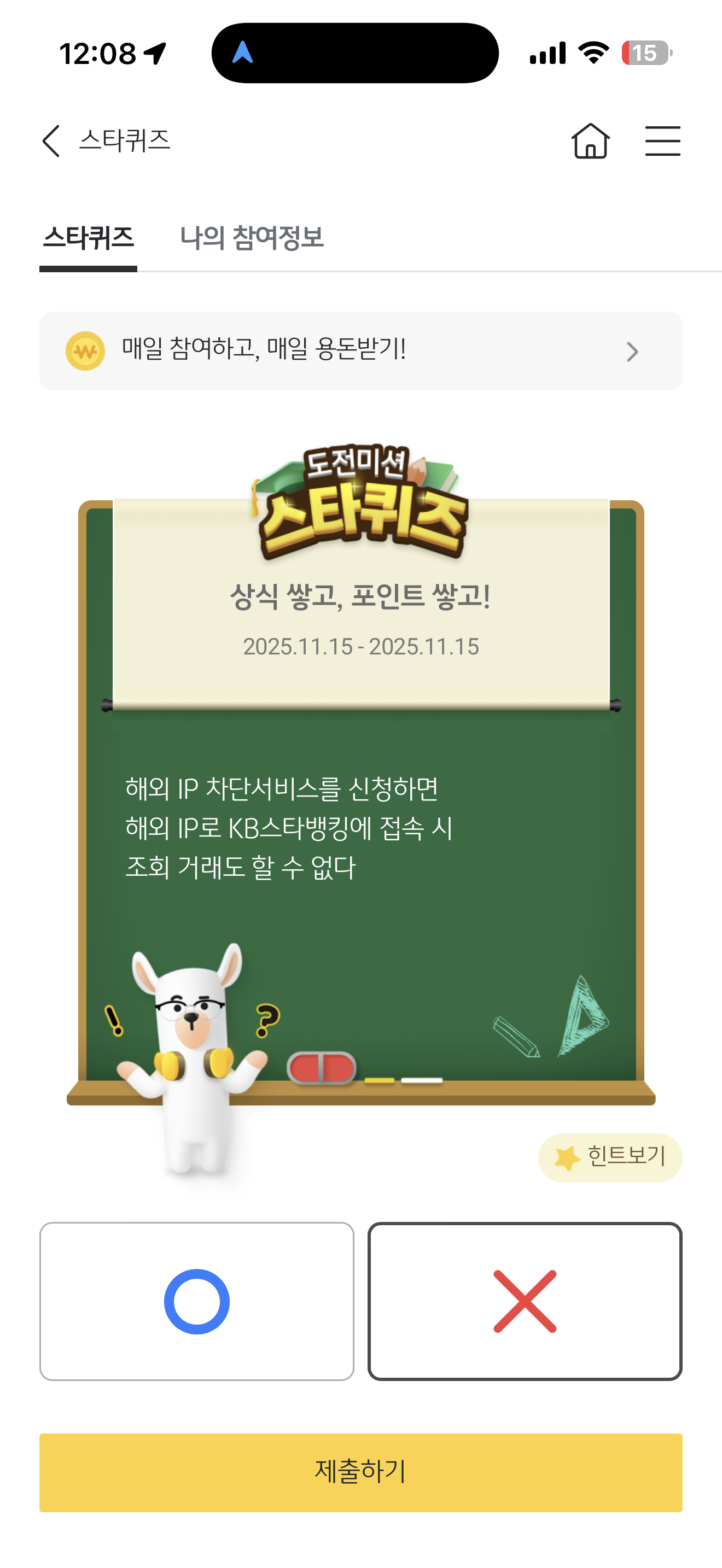 KB스타뱅킹 스타퀴즈 11월 15일 문제입니다