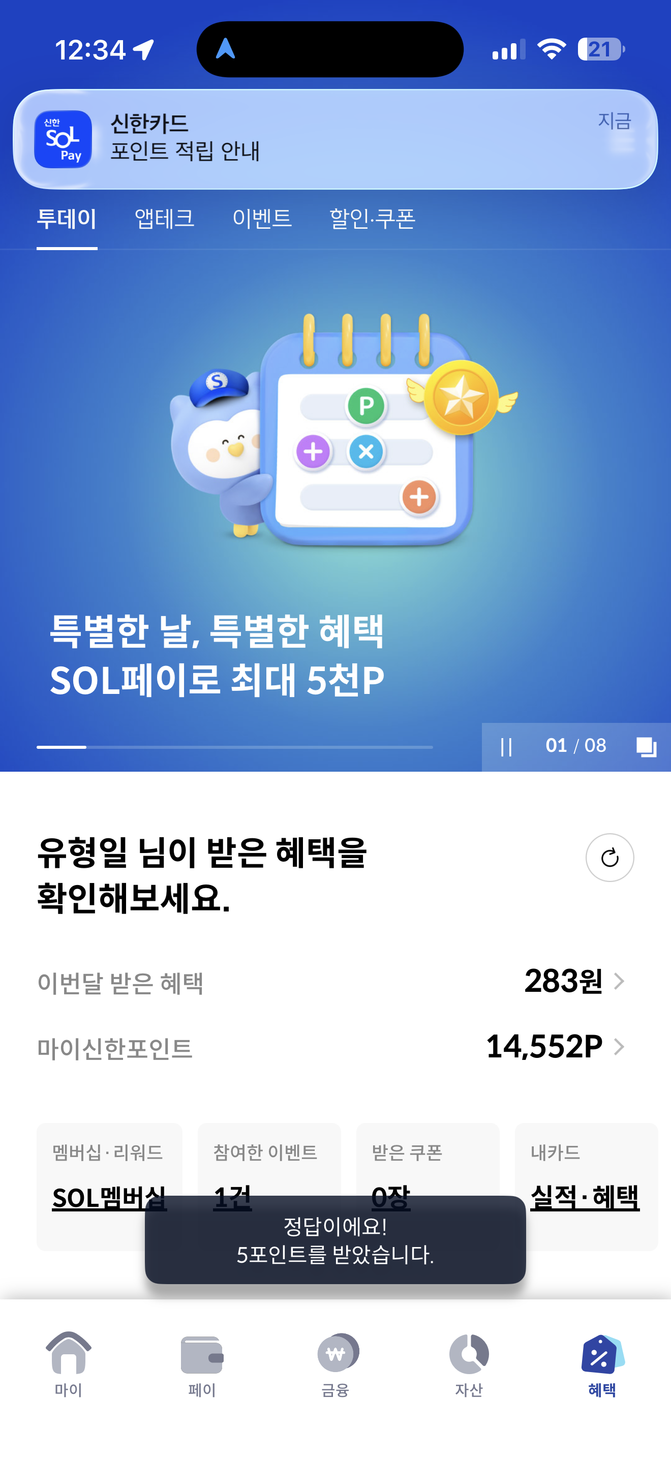 신한카드 퀴즈팡팡 11월 15일 문제입니다