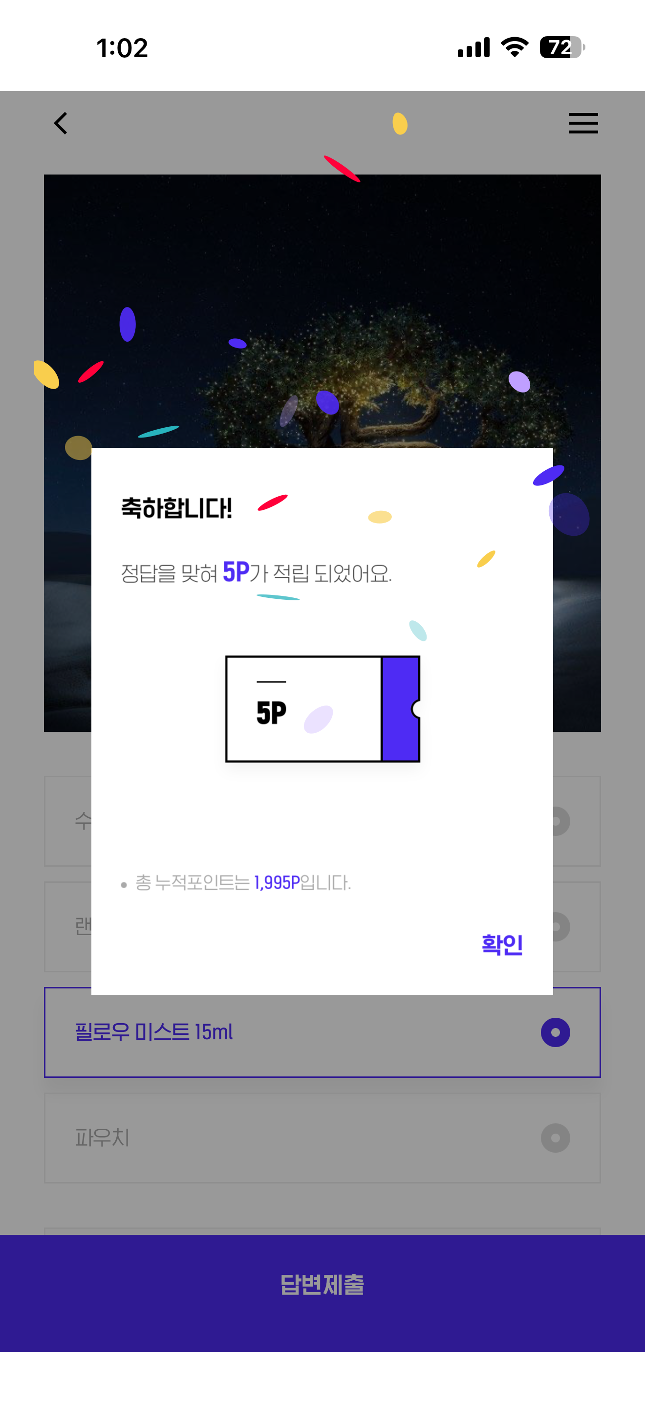 H포인트 퀴즈 정답은 필로우 미스트 15ml 입니다